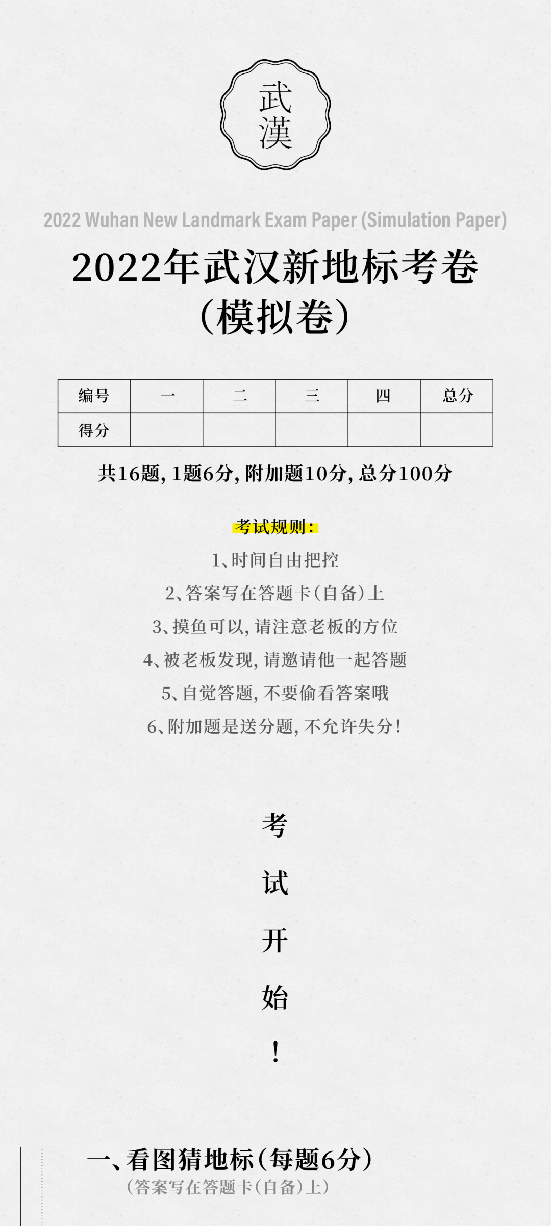本文介绍了《2022武汉新地标考卷》,你能及格吗?,对大家解决问题具有一定的参考价值,需要的朋友们下面随着小编来一起学习吧!