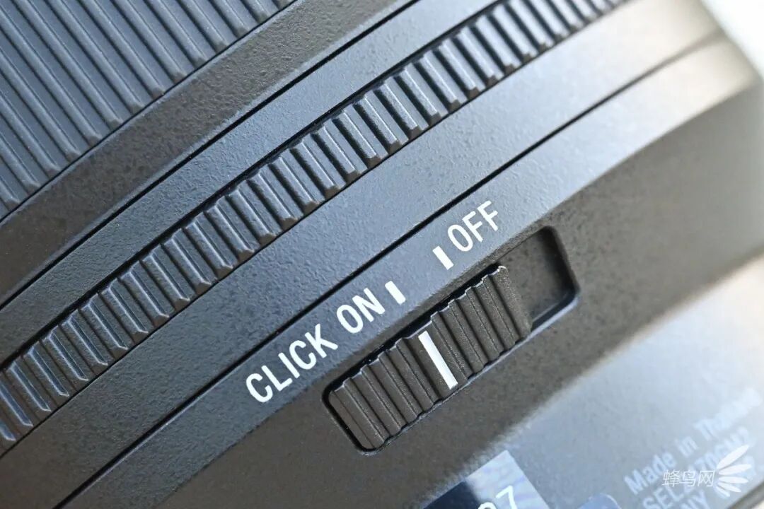 索尼SEL2470GM2镜头还设计了一个无级光圈切换拨杆的开启和关闭,实际上就是光圈环转动声音的开启和关闭以及阻尼的调节。在有级光圈的模式下,实际操作阻尼设计的还是非常舒服的。通过它切换到更顺滑的无级调整方式,用于视频创作中十分有利:可以更平滑地改变曝光,或消除调整光圈时的声响。这是此前索尼SEL2470GM所不具备的功能。
