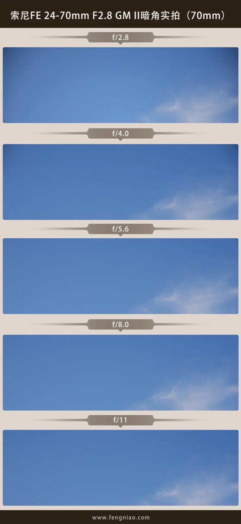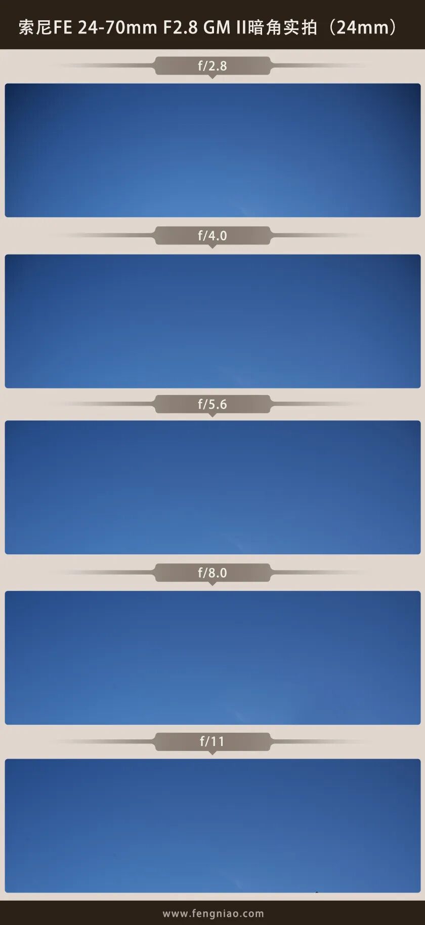 通过实际测试可以发现,索尼SEL2470GM2这支镜头在光圈全开一直到f/16,中心都保持了非常不错的锐度和对比度,但是从f/16光圈开始边缘画质出现了一定的下滑,而光圈收缩至最小光圈F22之后,画质出现一定的下降,但是整体画质下降的并不是很严重,也在可接受的范围之内,表现不俗。