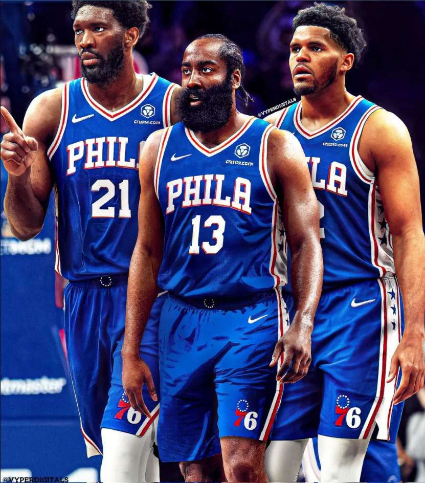 76人:哈登、马克西、丹尼-格林、托拜厄斯-哈里斯、恩比德