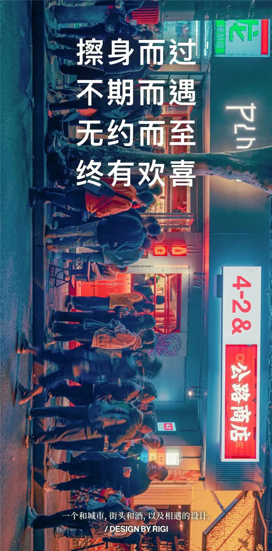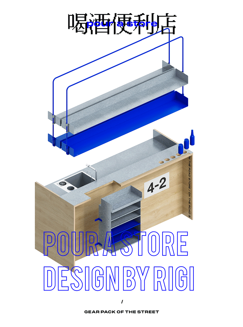 对RIGI来说,我们需要通过更有逻辑和延续性的设计来承载更多属于公路商店的公共记忆乃至属于这个社群的公共行为,包括用设计承载这个社群所呈现的小众与亚的状态。 我们珍视城市的多样性和自由,我们也希望能赋予这些多样性更多的可能。在每一个20平方的店,在每一个9点之后的夜里,去该提供更多未知的快乐和慰藉。 世界变得更有效率了,或许也更焦虑了,城市变得更繁荣了,或许也更无趣了,我们要做的就是给这个时代或者城市一个治愈创可贴。 酒,城市,荷尔蒙,我们。这个设计和酒有关。