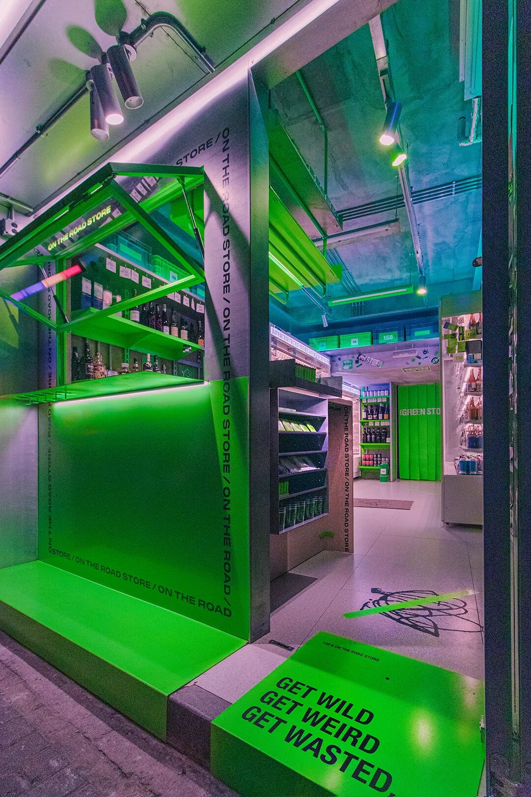 对面是上海的巨鹿路FOUND 158,一个著名的酒吧聚集地,这家店是形形色色找乐子的巨富长年轻人们的必经之地或结束之所。大战之前的pre drink,回家之前的last drink,绿店就在这,守候着每一个夜晚孤独的人们。