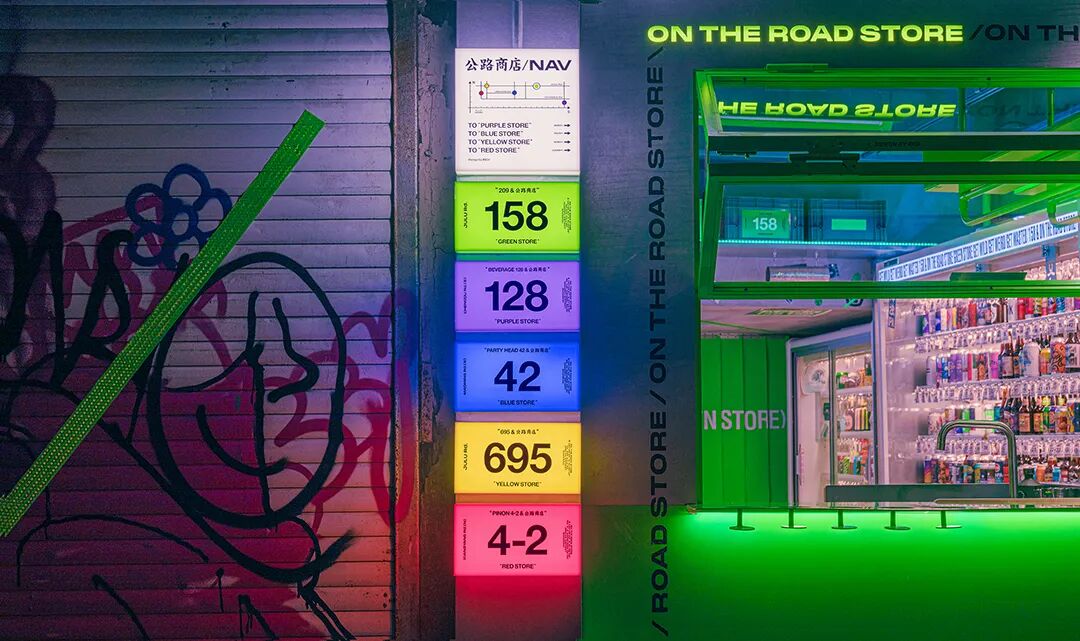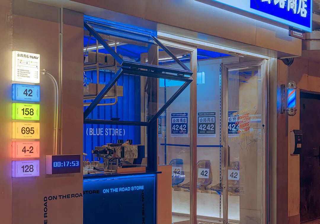 当RIGI开始这个设计,我们希望能塑造一个属于公路商店的表达逻辑,希望通过这个逻辑能连接到城市里更多的空间,不管是理发店还是公共厕所,或者是这次的酒吧。 我们不是自上之下去做一个装饰性或者话题性的设计,我们形容公路商店是城市的创口贴,我们在创造提供一个接口去连接更多人。 我们确定了两个东西,颜色与数字。