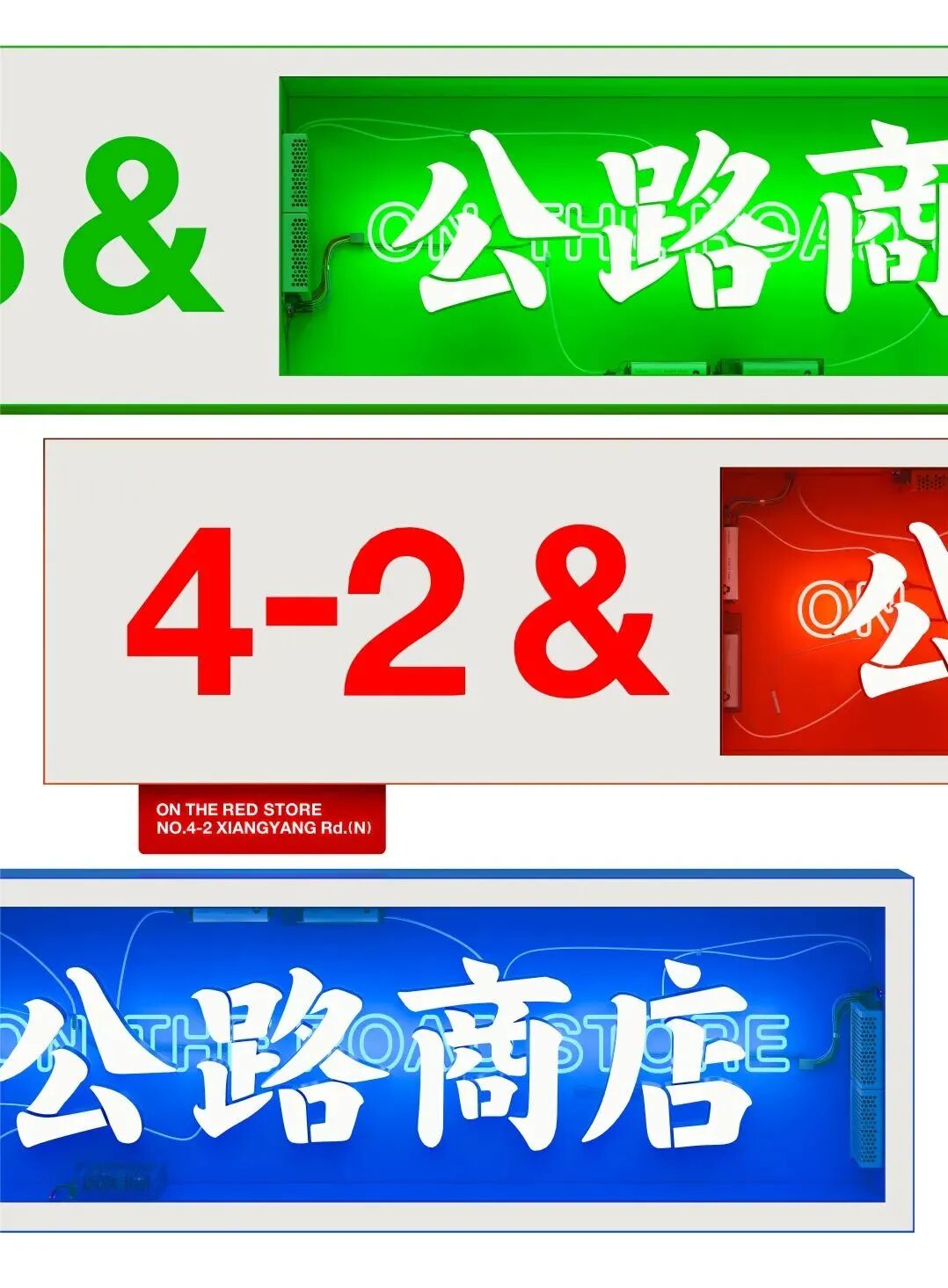 这三家店其实都不算全新设计,都有点机缘巧合的意思。 我们塑造了一个属于公路商店的表达逻辑,希望这能连接到城市里更多的空间。不管是理发店还是公共厕所,我们希望用这几家店,去创造一点有趣的故事,去连接这几个街区,在街区里塑造一个属于公路商店的气味。建设性的破坏,破坏性的建设,我们珍视城市的多样性和自由,我们也希望能赋予这些多样性更多的公共行为。 红店蓝店绿店,每一个20平方的店,在每一个鸡毛蒜皮又充满能量的夜里,去该提供更多未知的快乐。