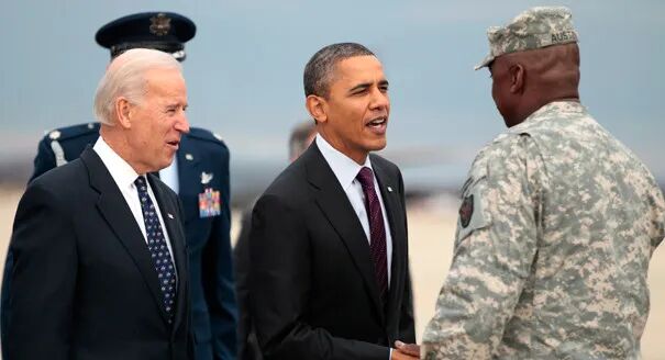 ▎2011年12月,在美军撤离伊拉克返国仪式上,时任美国总统奥巴马、副总统拜登与奥斯汀握手