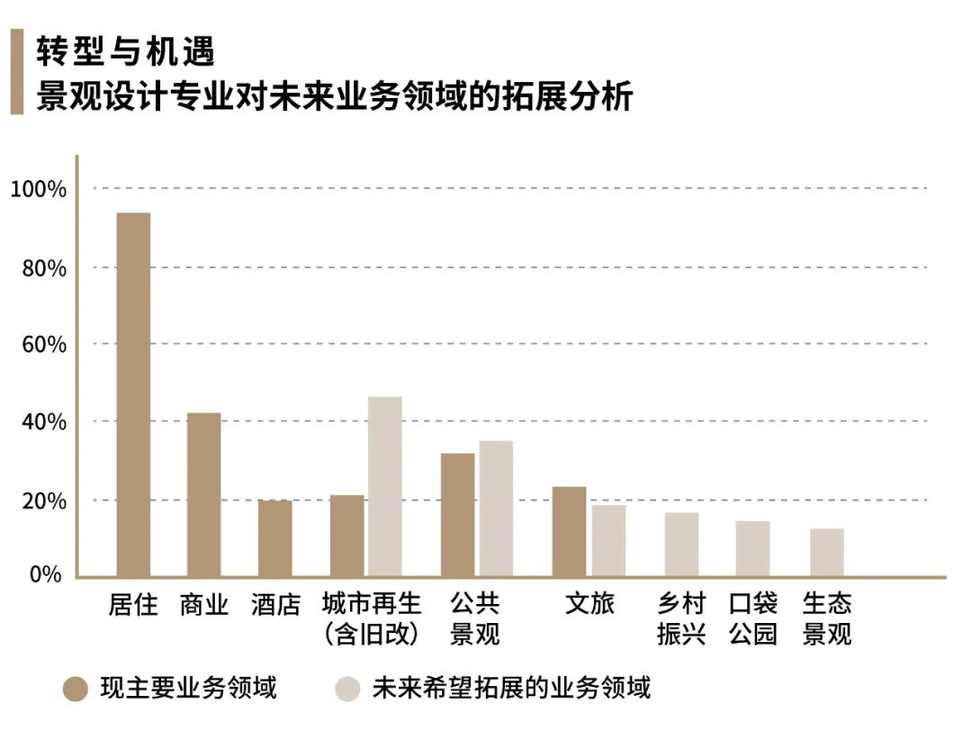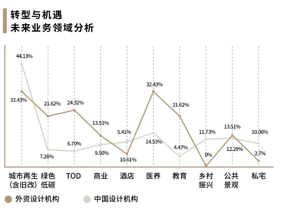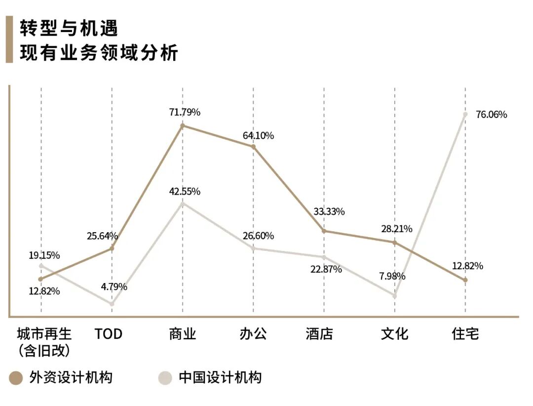 通过调研分析,中外设计机构在转型与机遇发展中寻找更多业务机会的可能,项目类型从以往单一集中化呈现更多元化均衡分布。