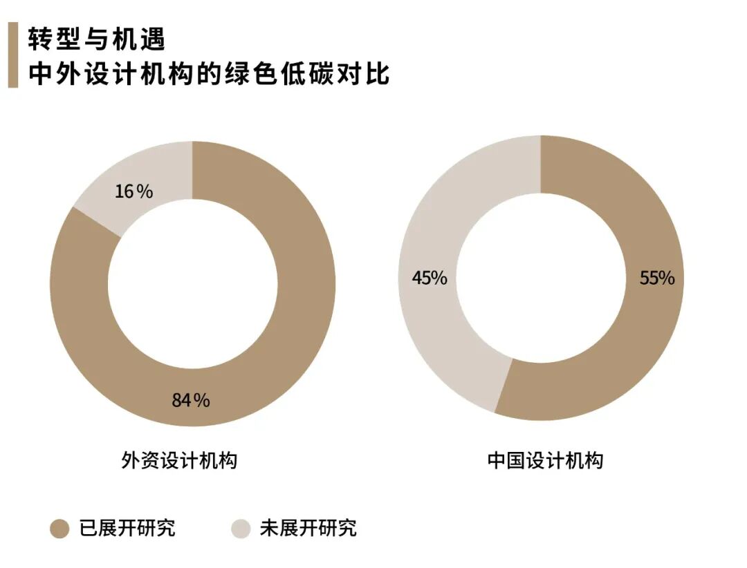 值得关注的是:在国家倡导双碳目标下,55%中国设计机构陆续加入到绿色低碳领域的研究与探索,并在近几年建成或在建一系列低能耗(零碳)项目。