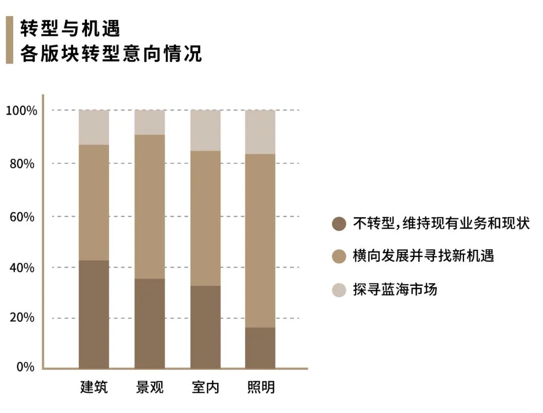 总体而言,2022年超过半数以上的设计机构在加强自身设计能力的基础上,依然在积极寻找新的市场机遇;除了在现有业务范围进行横向发展外,更有小部分企业选择纵向发展,寻找市场蓝海。这一年,将是行业的调整期。