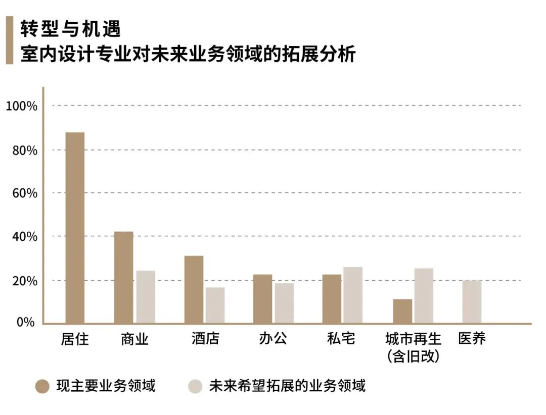 · 室内设计机构整体而言,和其他设计专业的发展方向基本一致。但,值得关注的是医养领域或将成为新的行业突破口。