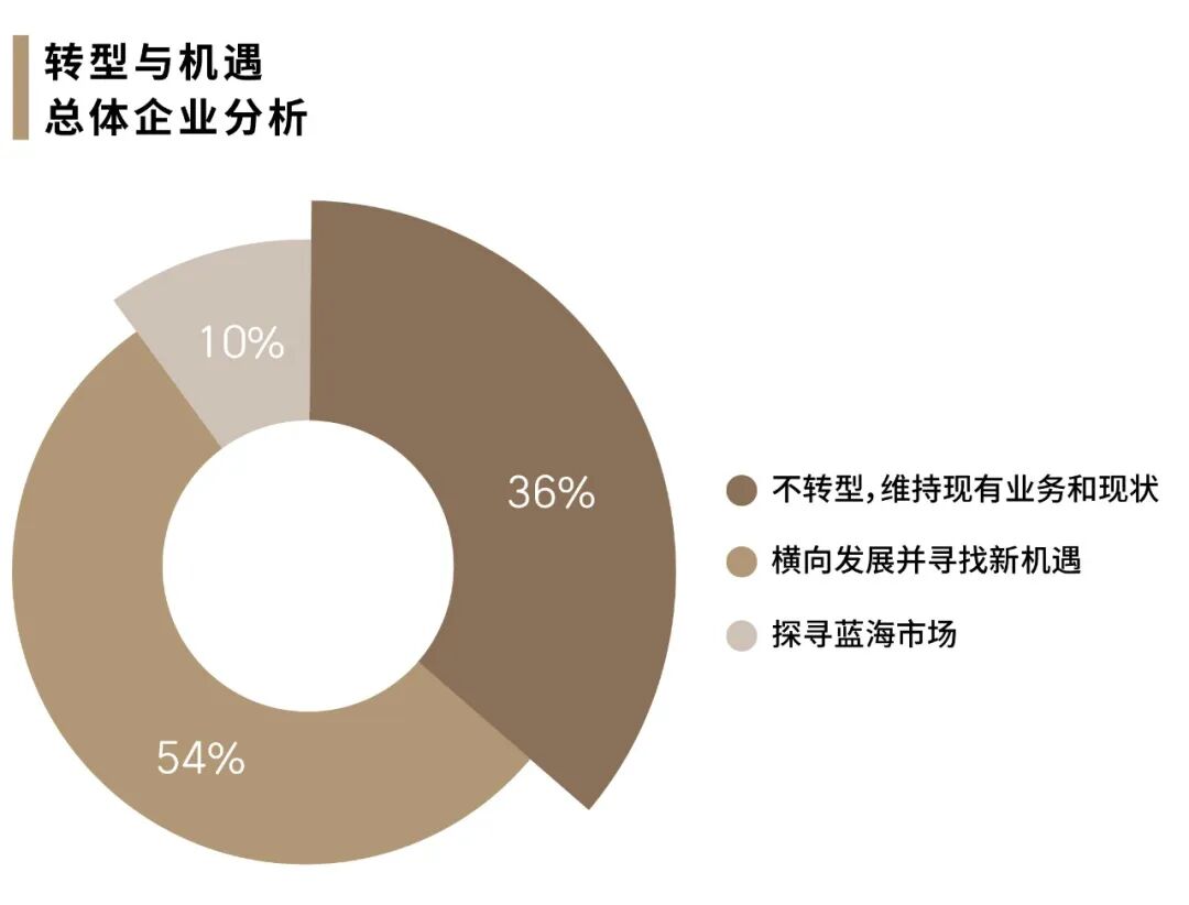 本次调研发现,36%的设计机构维持现有业务板块;54%的设计机构发掘并加强企业自身优势,横向发展并积极寻找新的市场机遇,10%的设计机构积极寻找属于企业的“蓝海”,其中:基于BIM希望转型成为设计科技企业、切入C端向不同行业领域延展、转型做产品研发等。