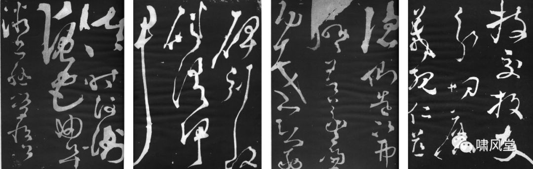 图3张旭早、中、晚期作品《自言帖》 书于唐开元二年(714)《古诗四帖》 书于唐开元后期至天宝间《严仁墓志》 书于唐天宝元年(742)《断千字文》 书于乾元二年(759)