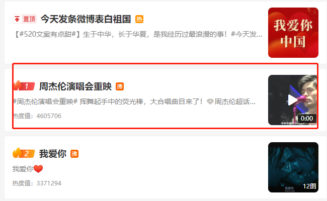 在微博上,周杰伦演唱会的消息冲上了热搜第一名。
