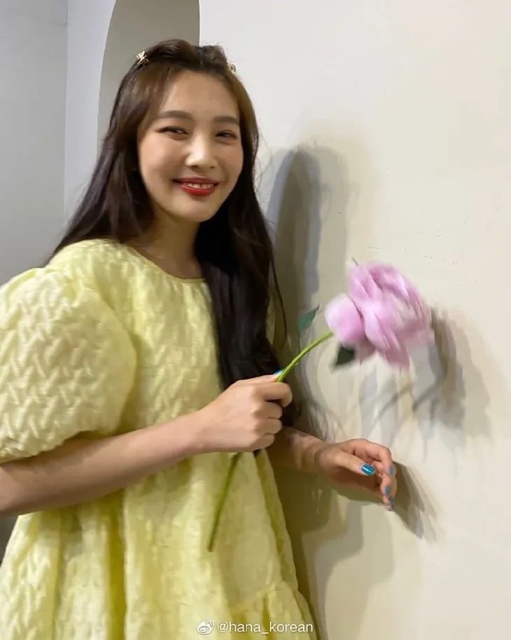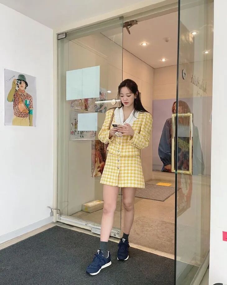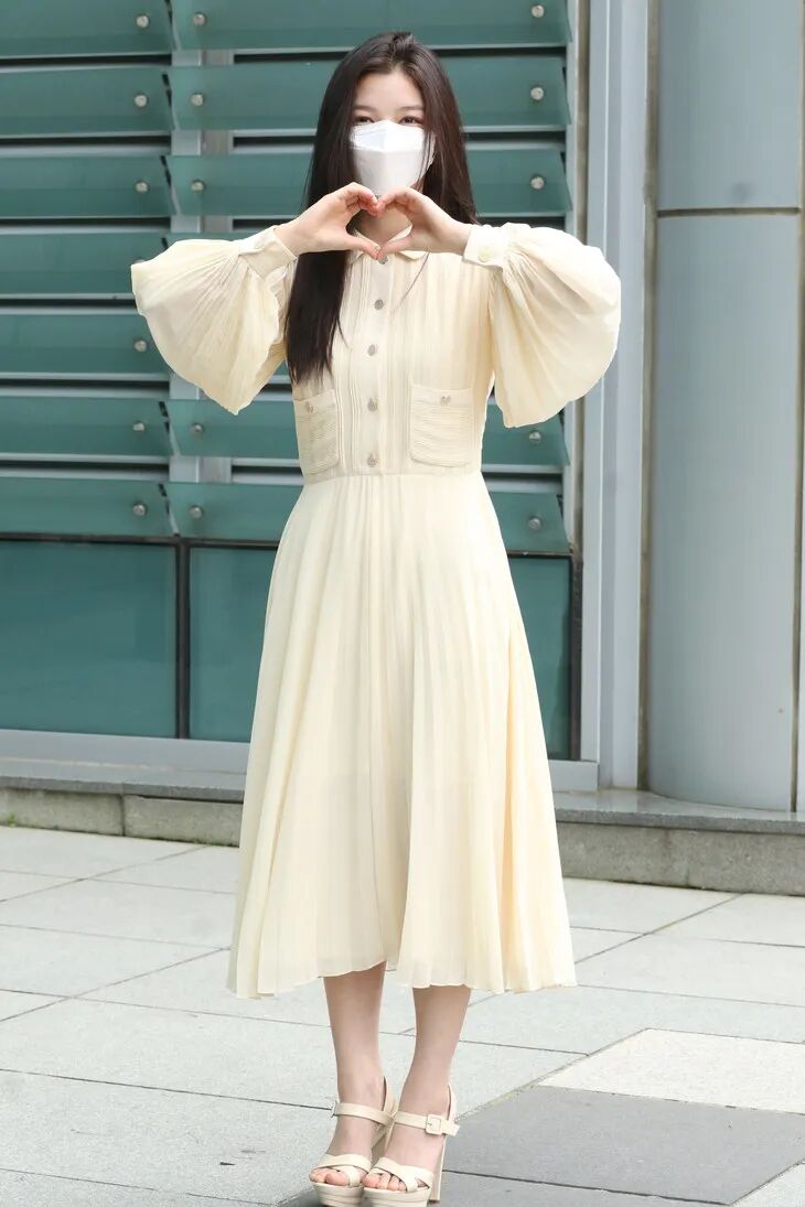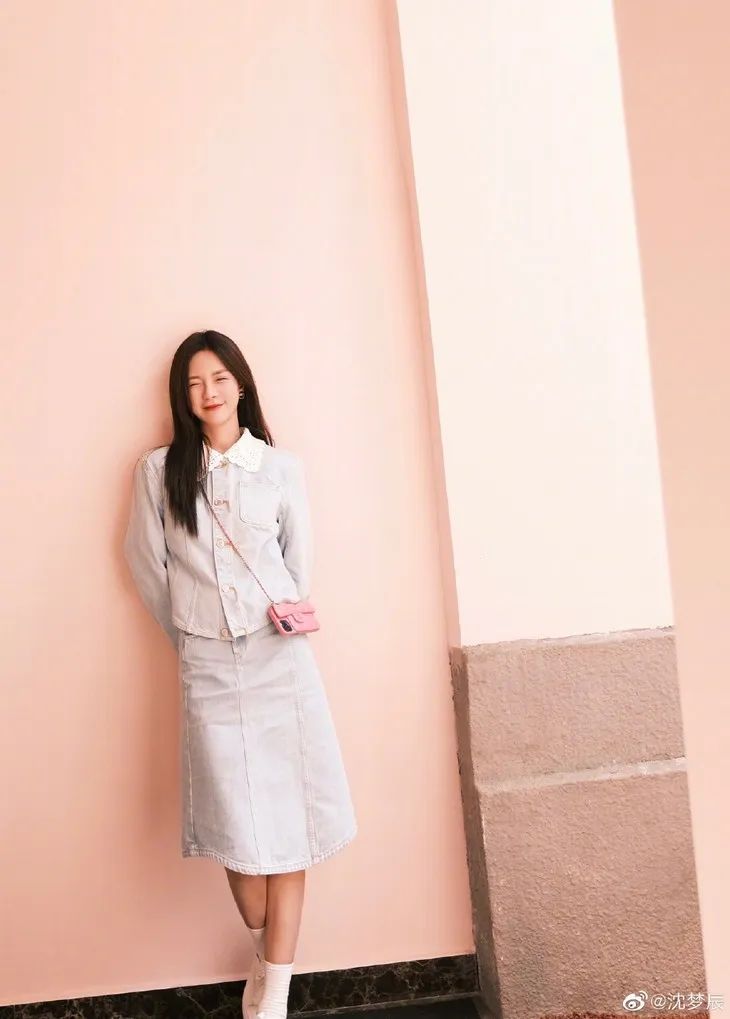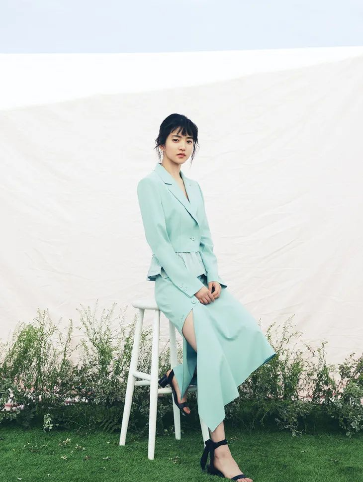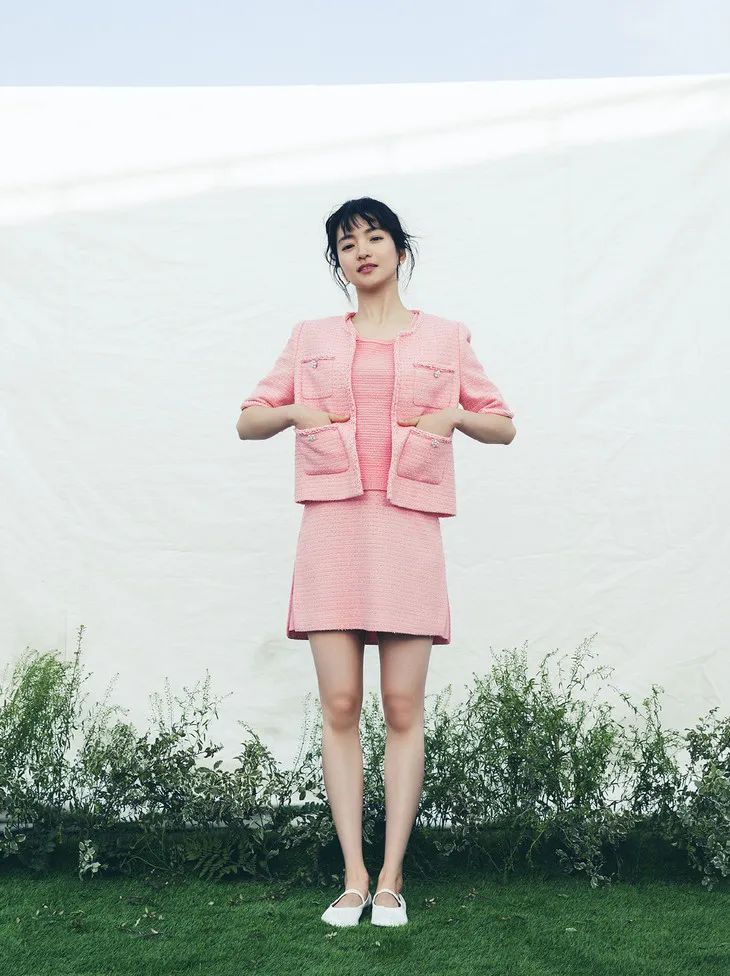 金泰梨小姐姐则是游走于套装裙之间。将它配上粉嫩的颜色,隔着屏幕都让人感到清新自然的初恋感。