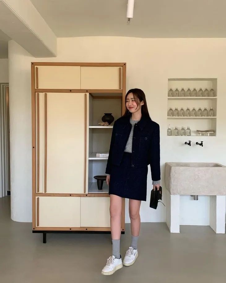 这种套装可以说是懒人女孩的必备了,相比较连体款式,套装不仅能自然而然地将上下装扮达到统一,也能明确腰线,增加搭配感,自然是修饰身材且突出时髦感的不二之选。