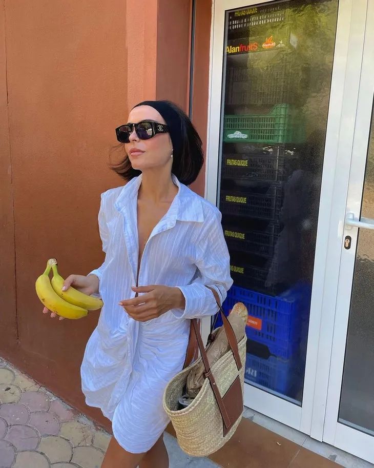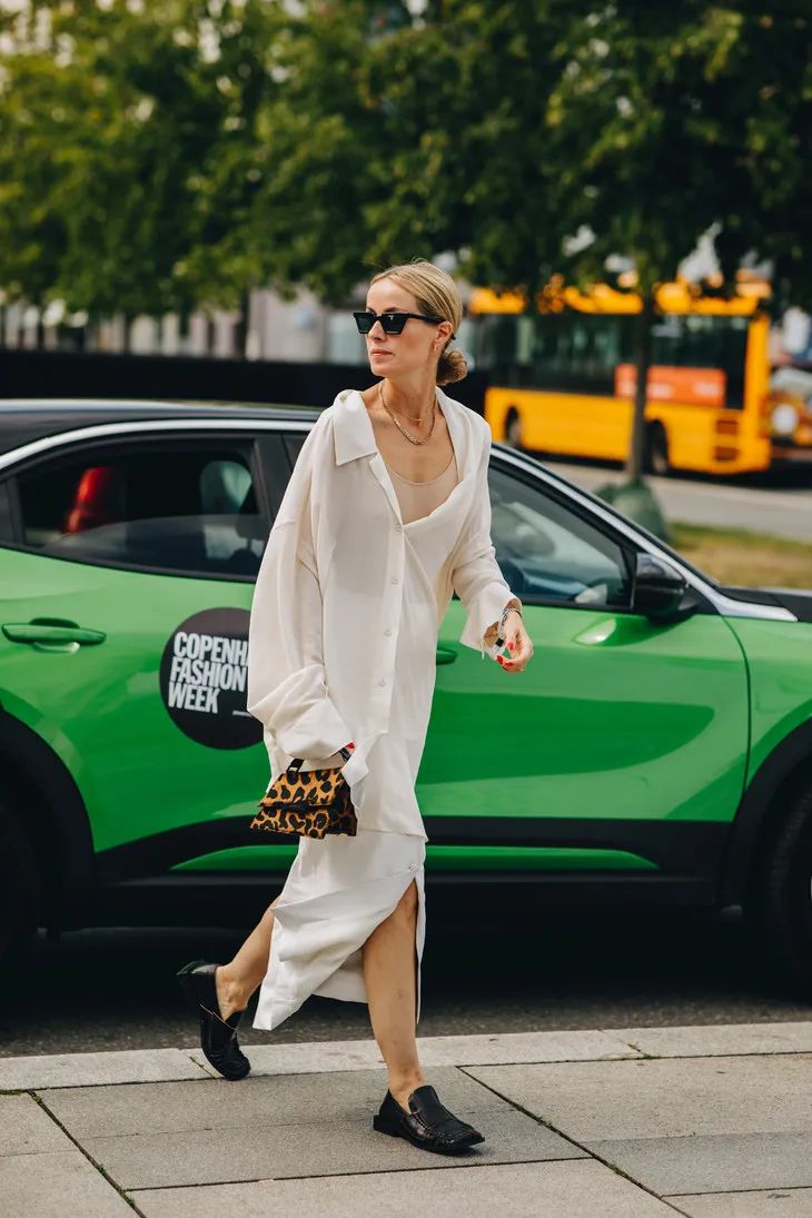 不知道挑选什么款式的衬衫裙,那就直接选白色的款式。白色的衬衫裙从视觉上减轻了衬衫裙的体积感,再长的款式也可以看起来很轻盈,分分钟给你打造出不食人间烟火的仙女气场。其中质感比较好的薄透面料是最有杀伤力,带着一股欲盖弥彰的小性感。