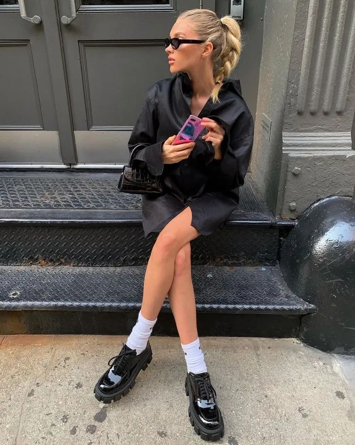 当然和白色对立的黑色衬衫裙也有异曲同工之妙。