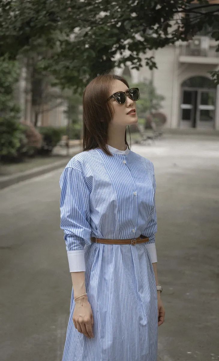 除了经典,衬衫裙还很百搭,没有拘束。相对于衬衫来说,衬衫裙既有着衬衫的率性,还有裙装的柔美优雅,能够驾驭任何一种风格。单独穿或者和刘诗诗一样系上一根腰带的穿法都很绝!