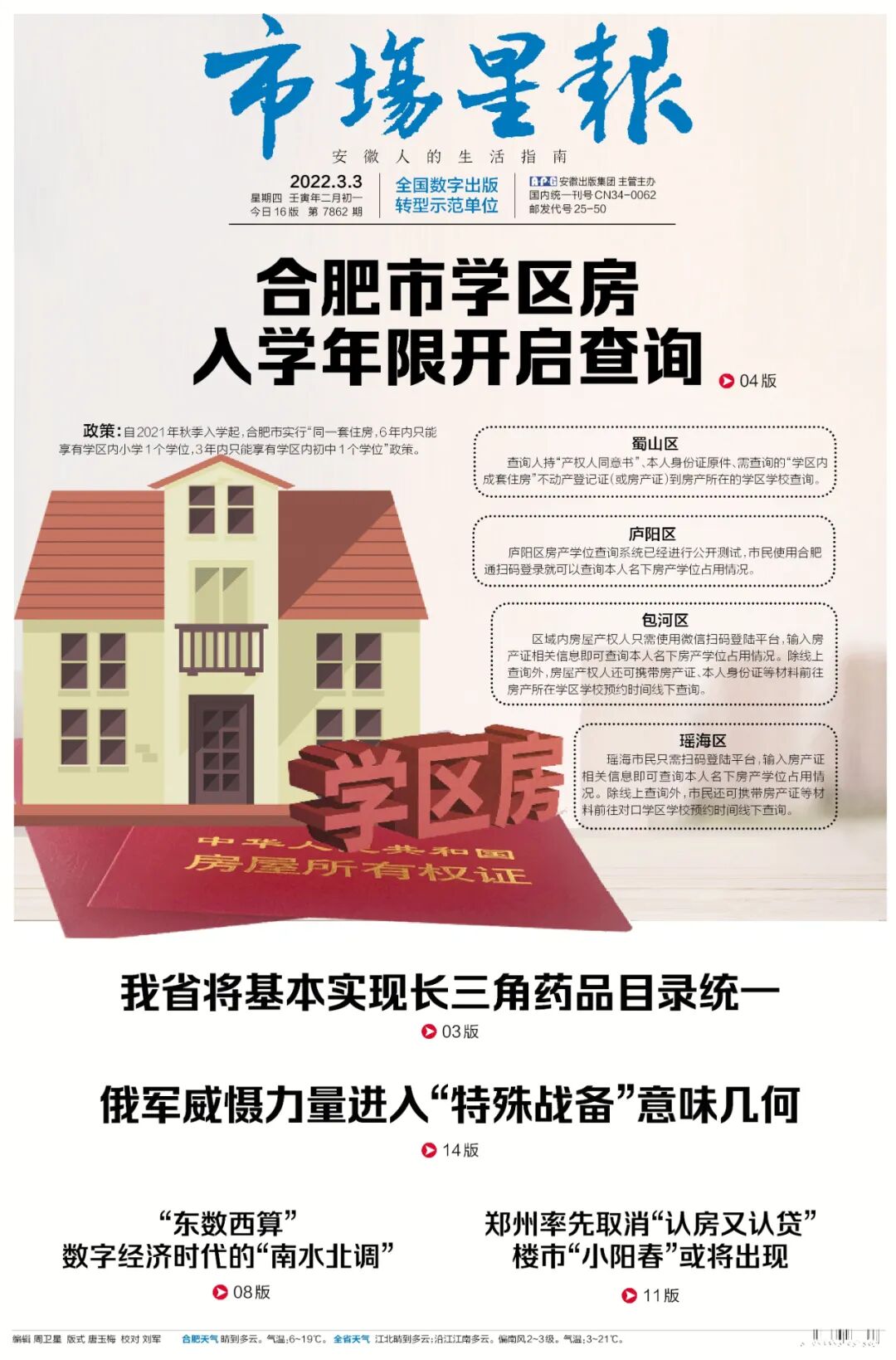 3月2日,记者从合肥市教育部门了解到,市区多个区域学区房入学年限已经开启查询。根据政策,在执行合肥市现行义务教育招生入学政策基础上,自2021年秋季入学起,合肥市实行“学区内成套住房入学年限政策”,实行“同一套住房,6年内只能享有学区内小学1个学位,3年内只能享有学区内初中1个学位”政策。详情请点击:开启查询!事关合肥学区房