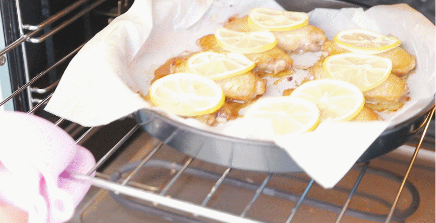 烤到20分钟的时候,拿出把柠檬片拿下来,继续烘烤10分钟。6