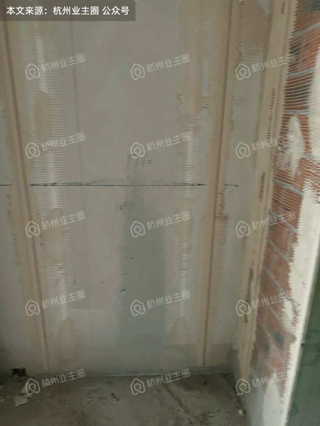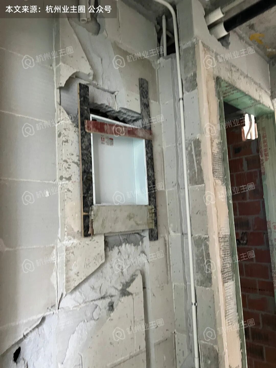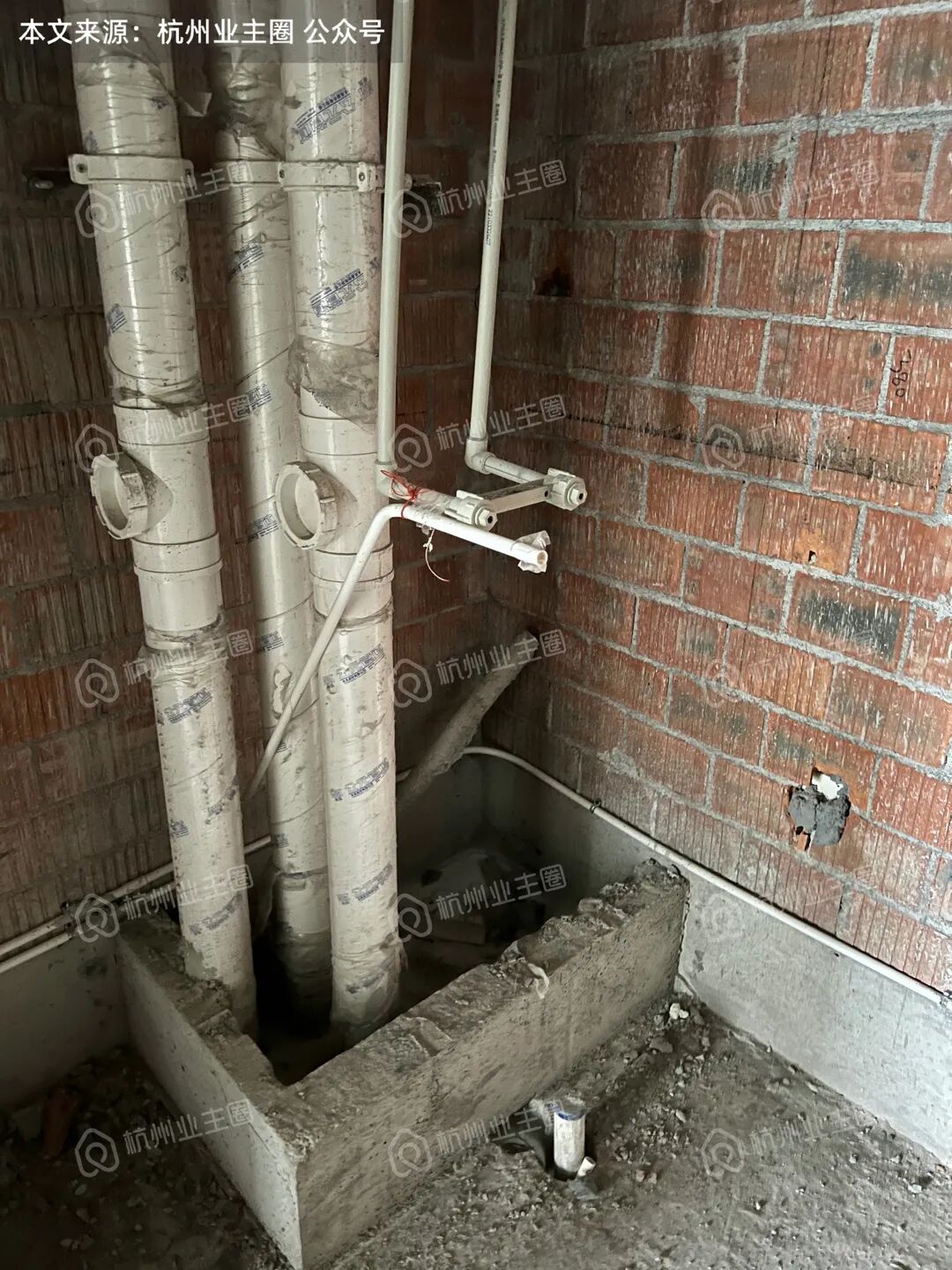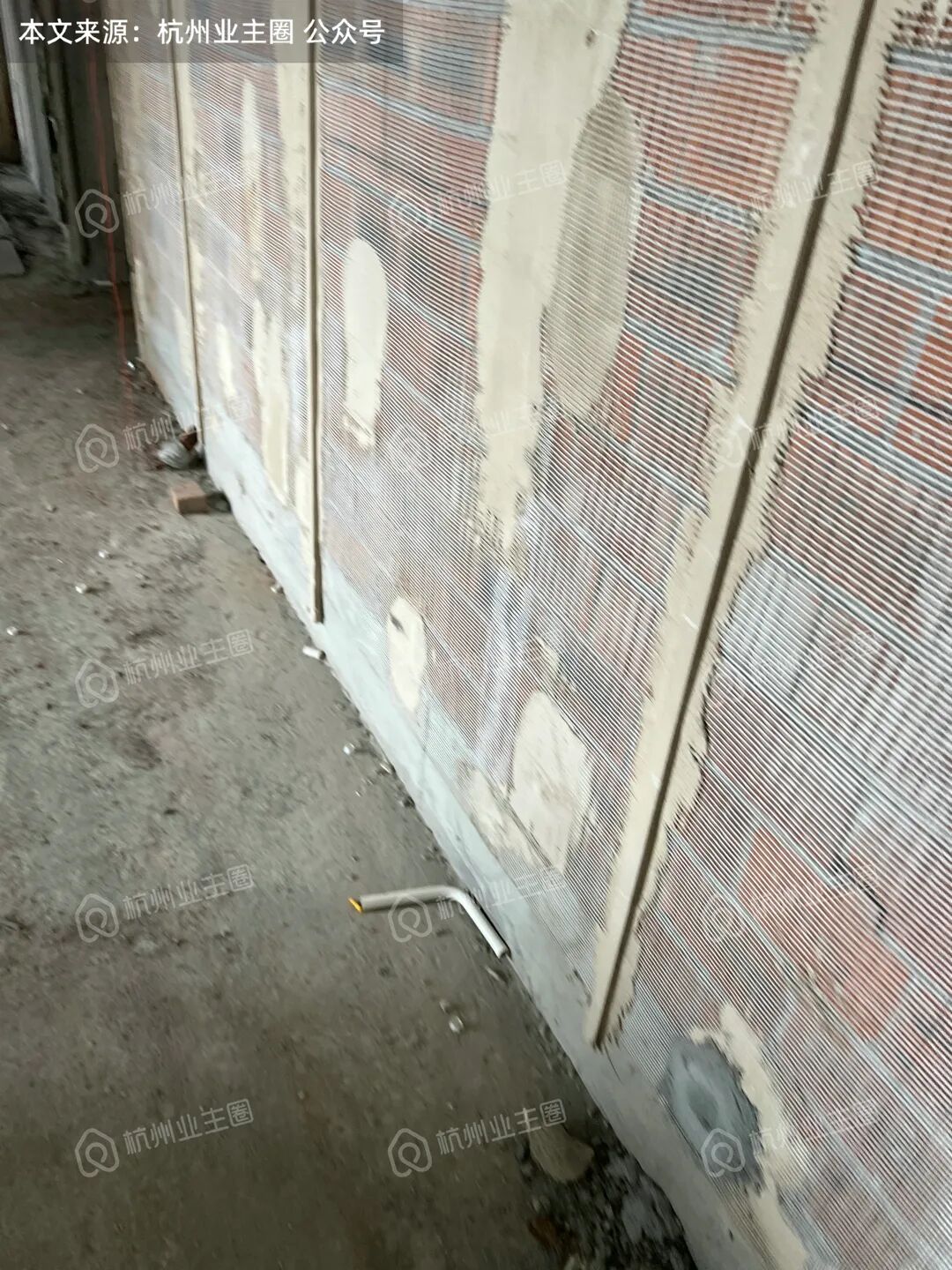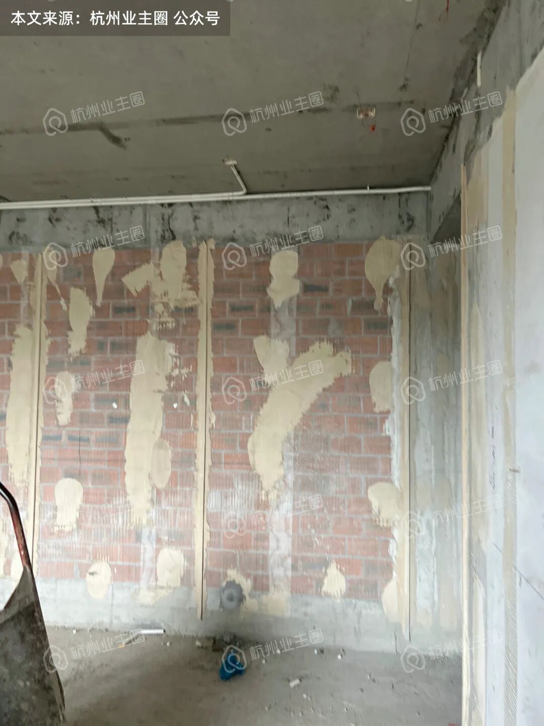 重水区墙面基本采用多孔红砖隔墙,但公卫、厨房外墙等少量区域使用加气块;