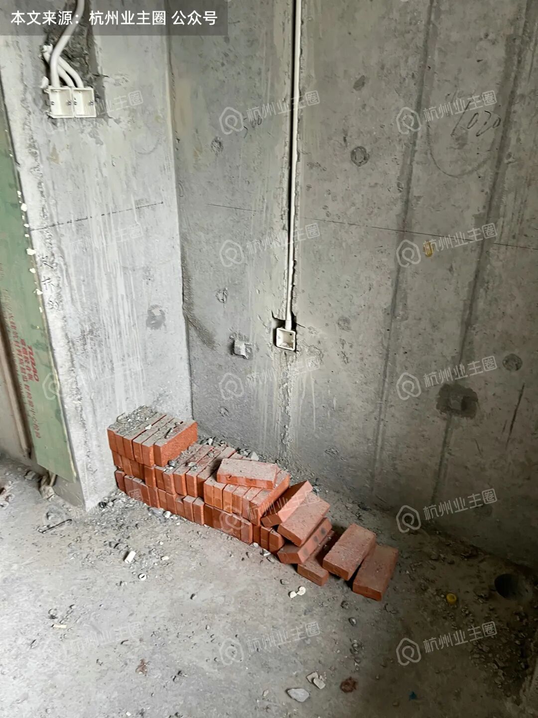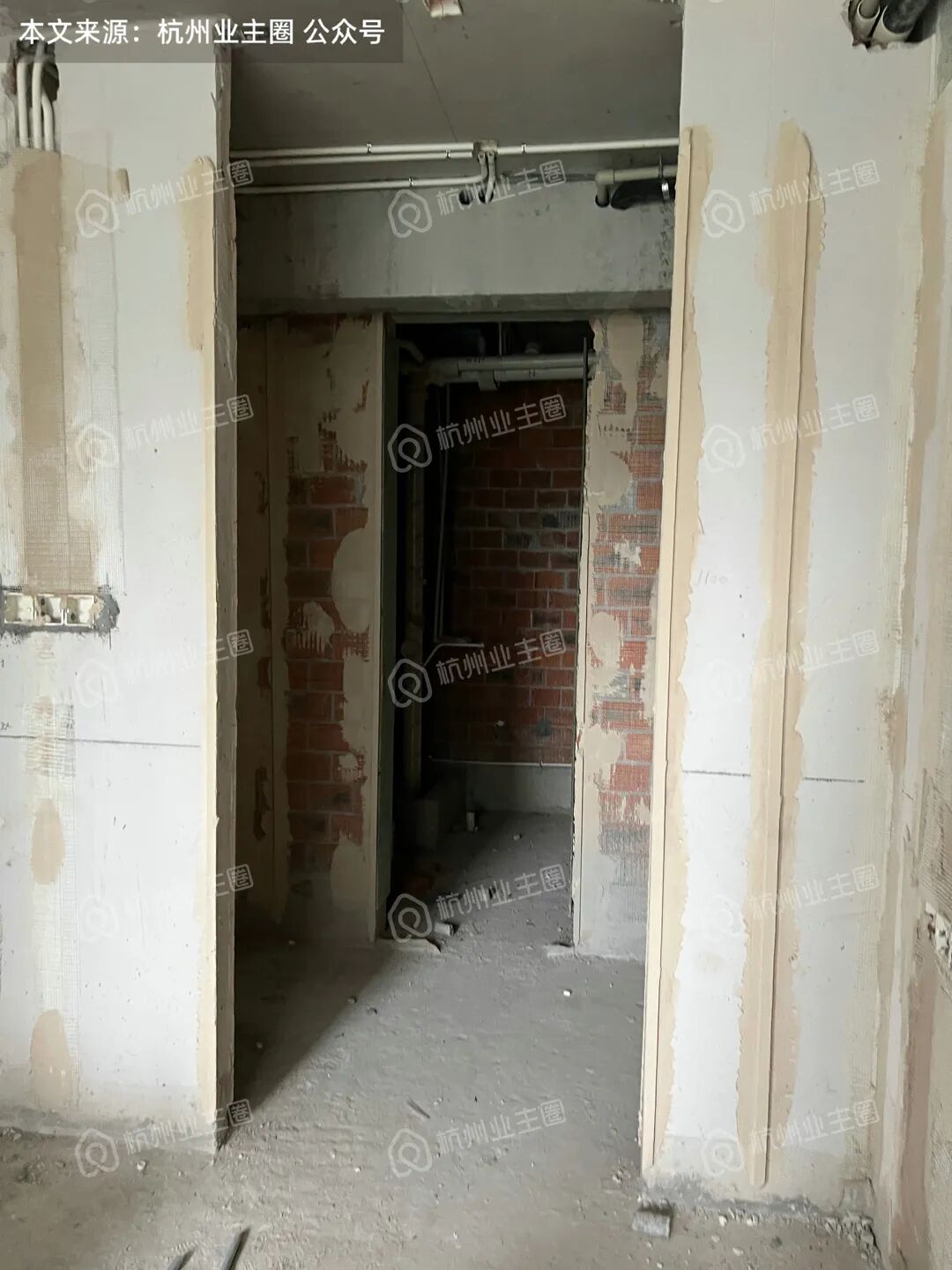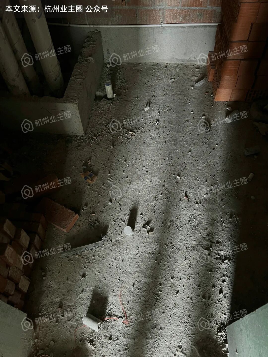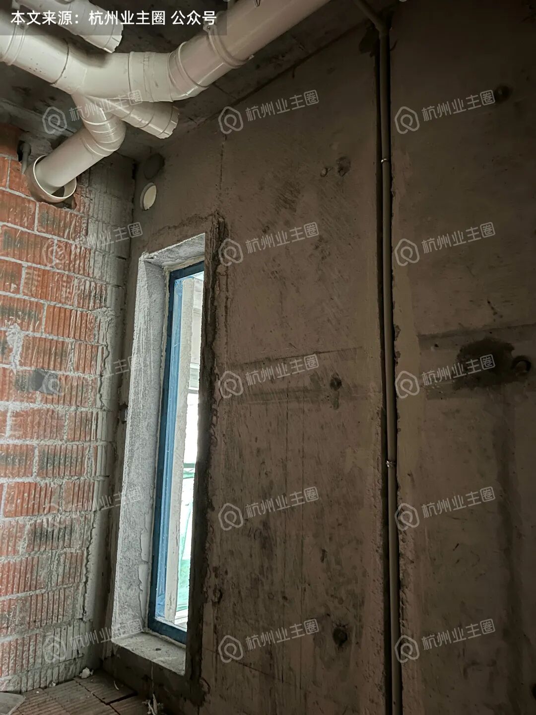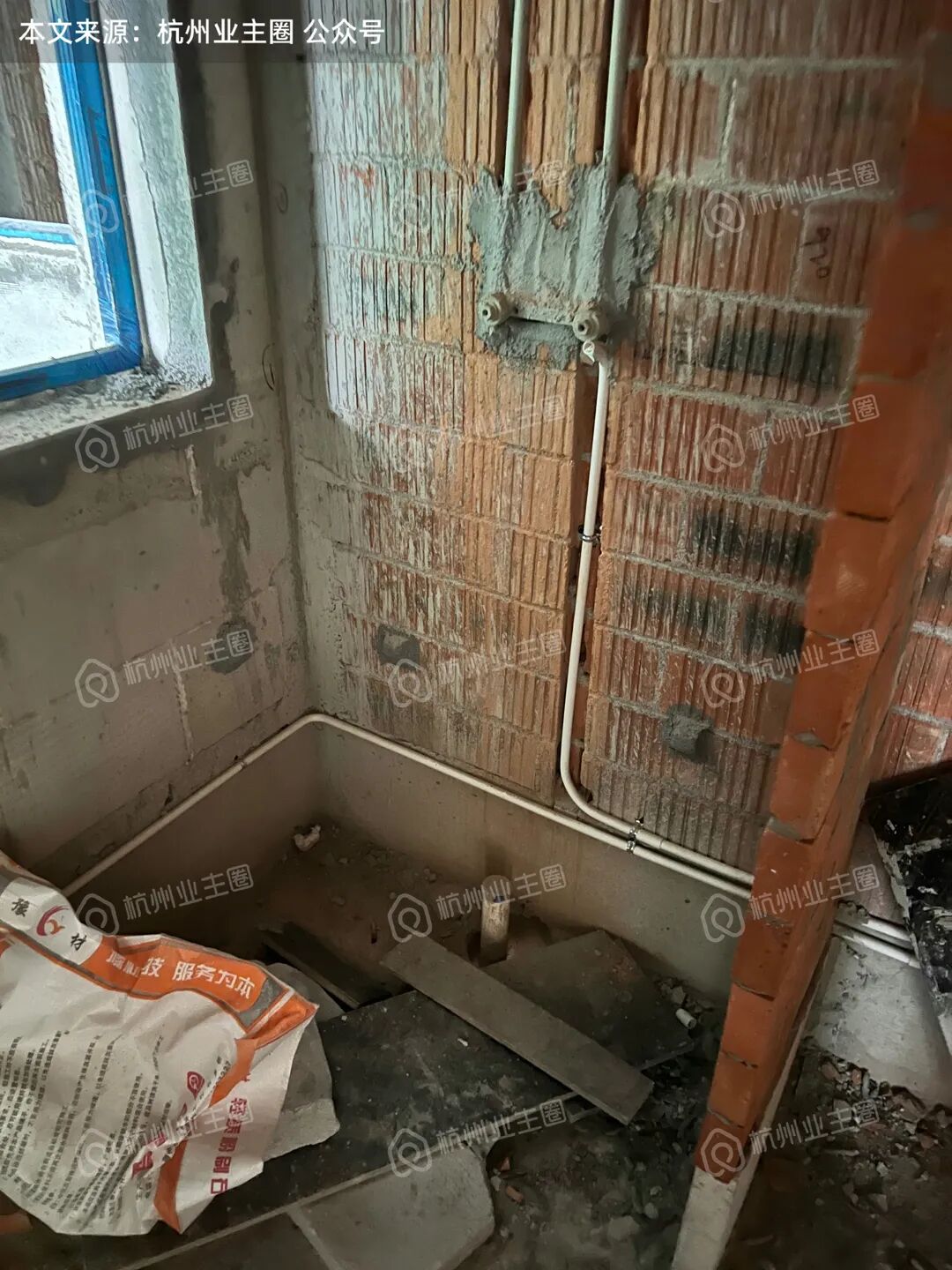 重水区墙面基本采用多孔红砖隔墙,但公卫、厨房外墙等少量区域使用加气块;