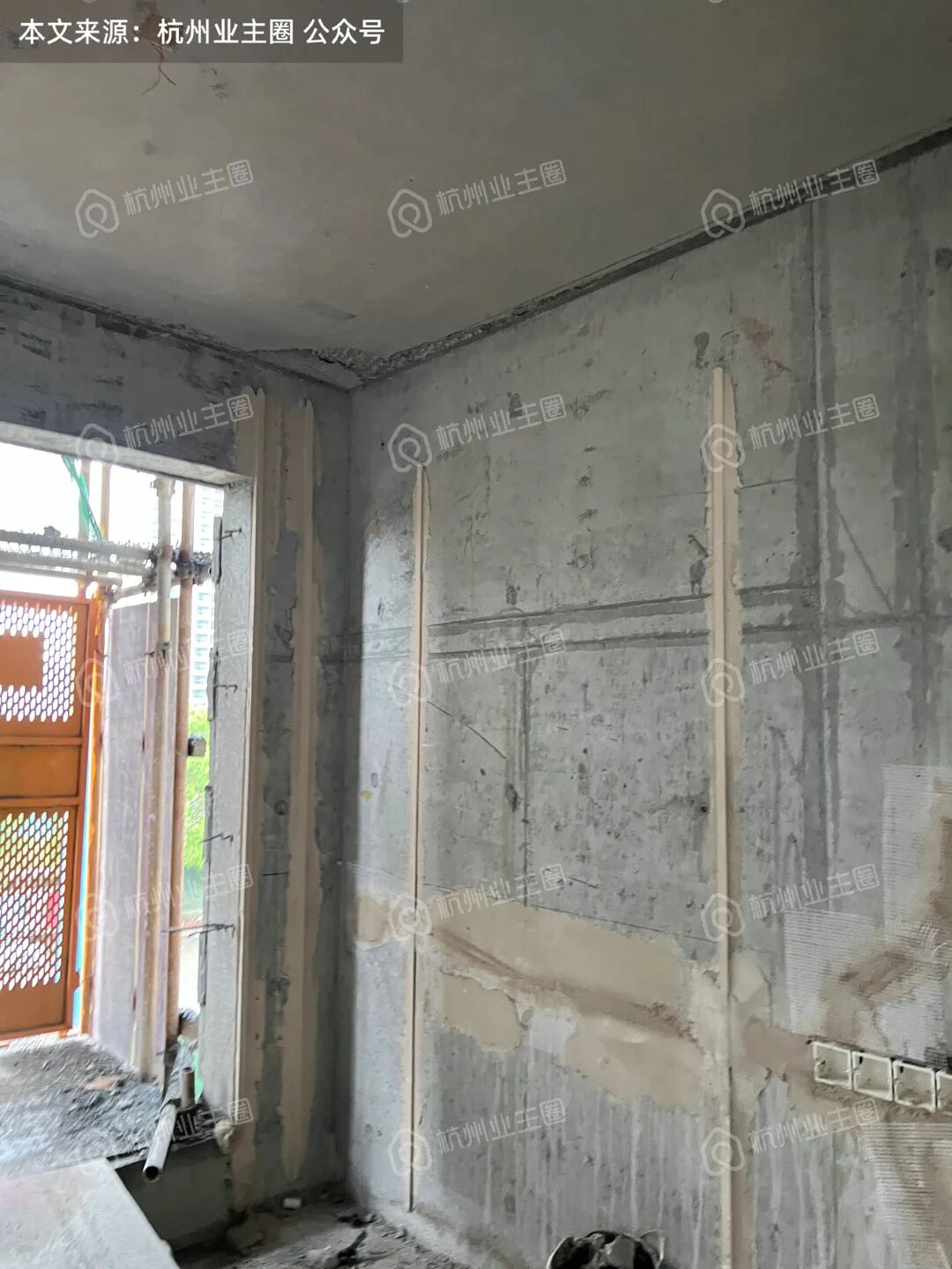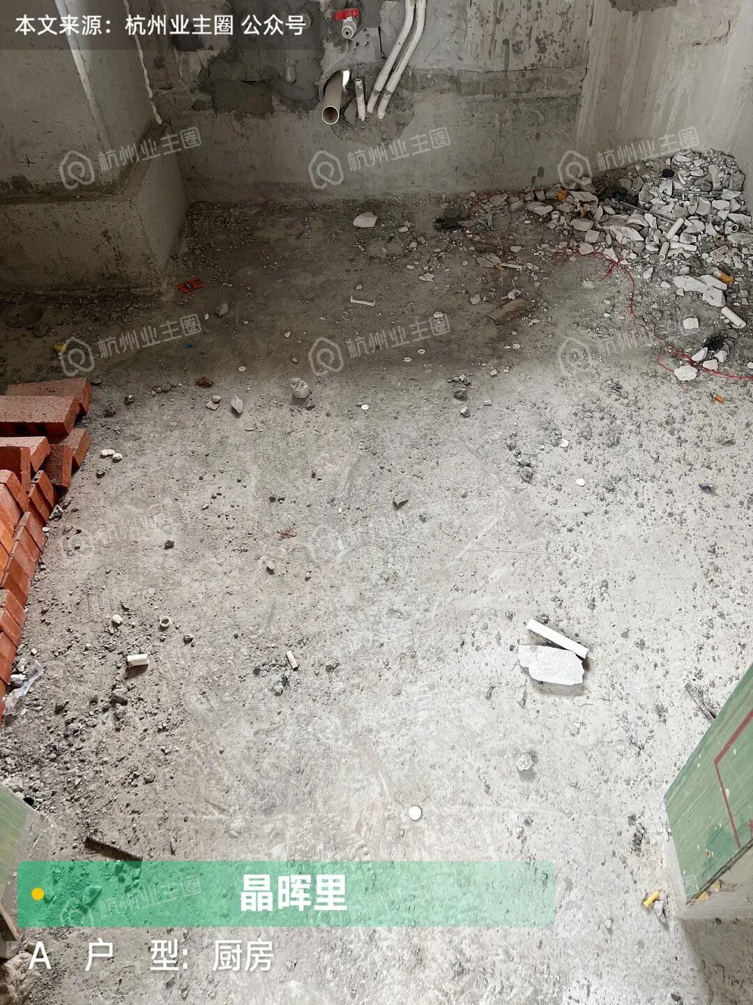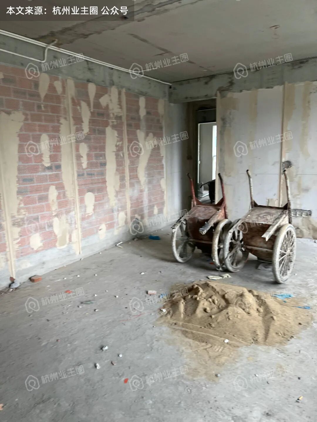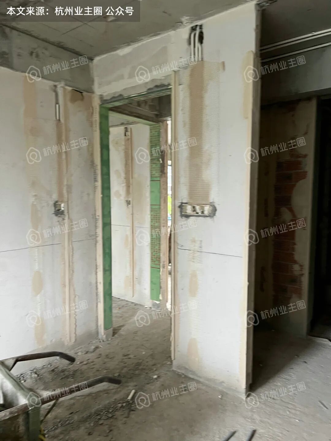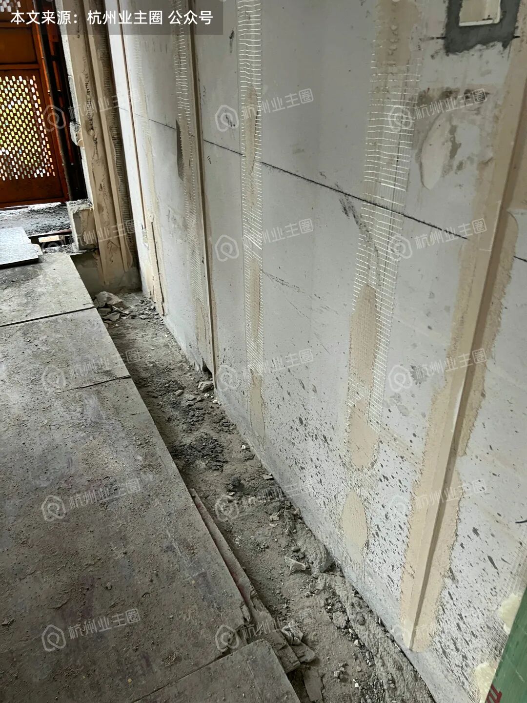 重水区墙面基本采用多孔红砖隔墙,但公卫、厨房外墙等少量区域使用加气块;