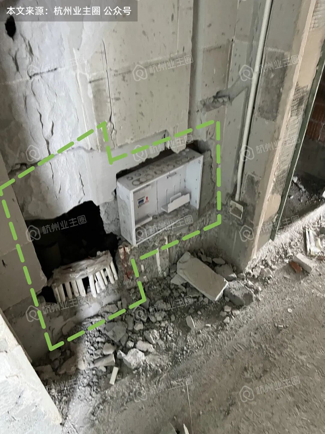 最后,120m²的业主们还需要重点关注一下,玄关区域强弱电箱预埋的情况,这里的问题不小,后续需要紧盯接下来的每一道施工品质,万一有一道施工不到位,就可能会产生隐患。