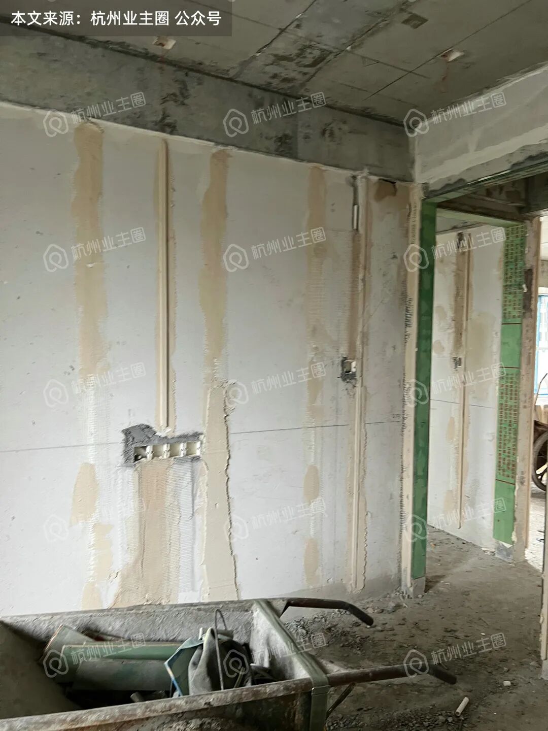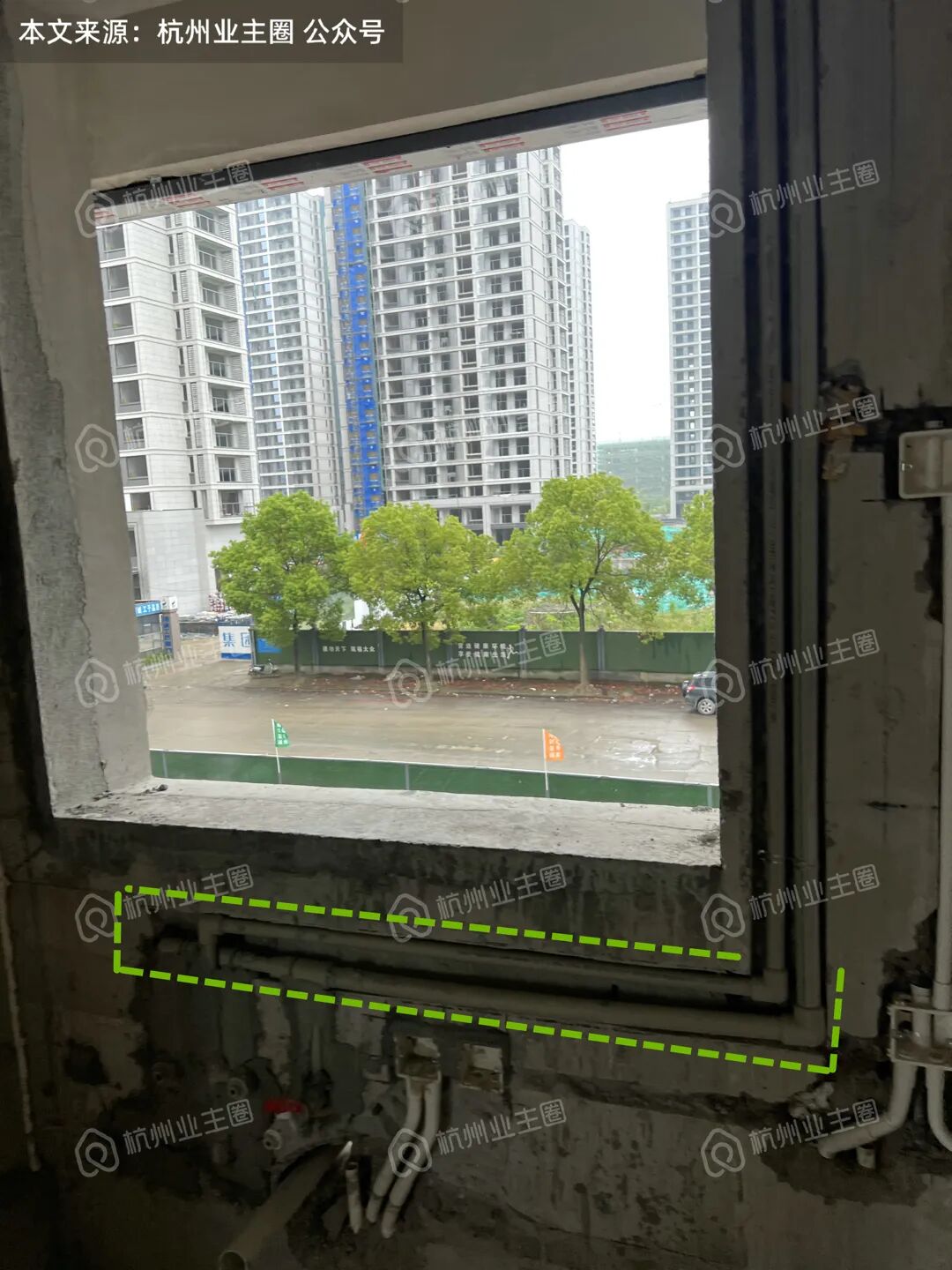 该套采用户型整体处于水电预埋填埋阶段,填埋区域已挂网;