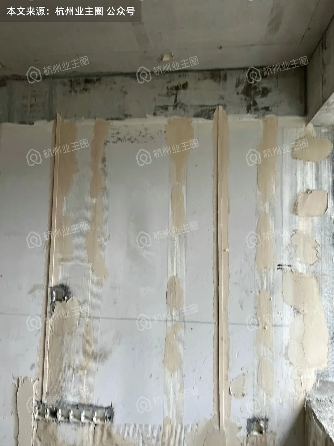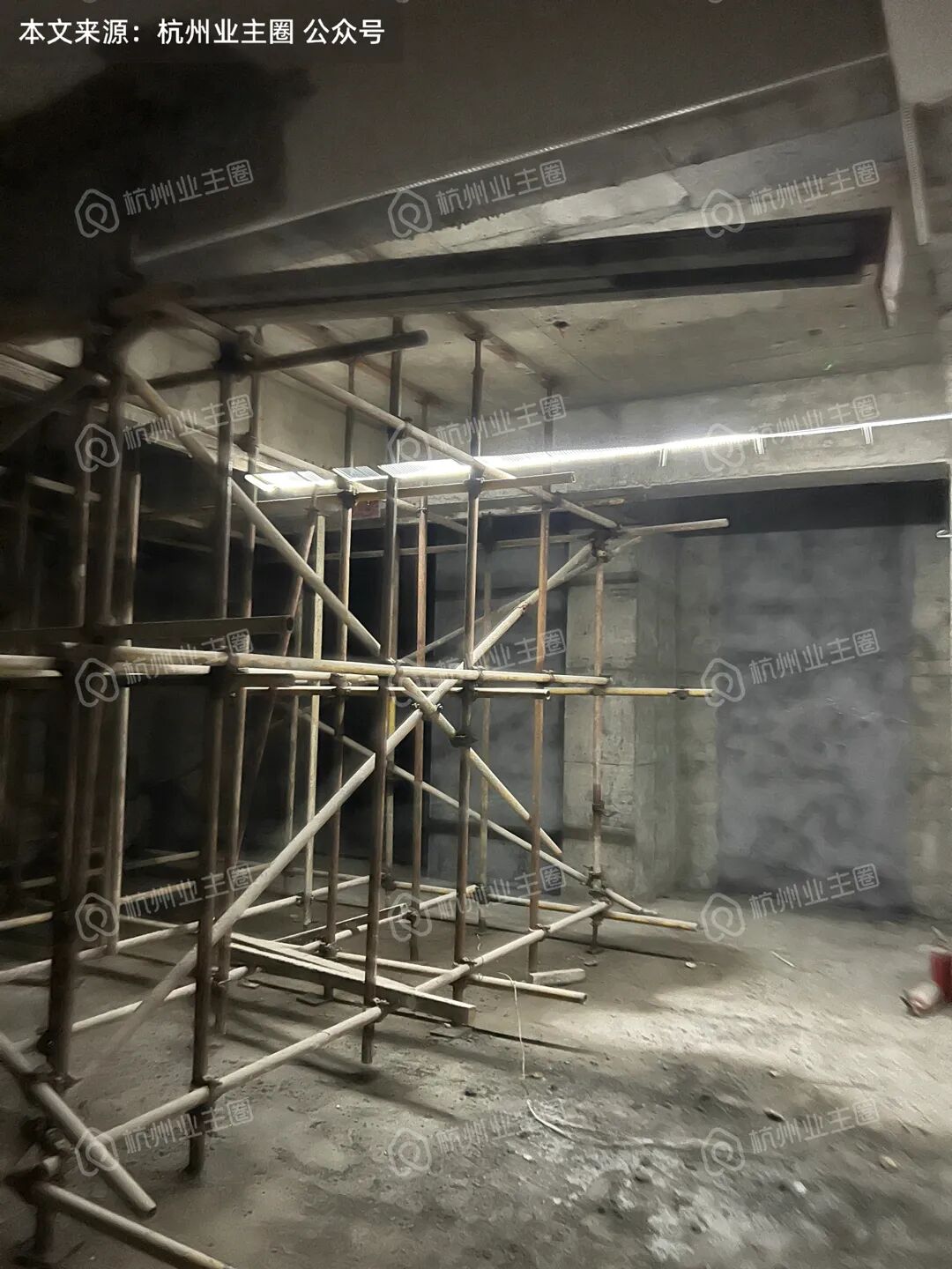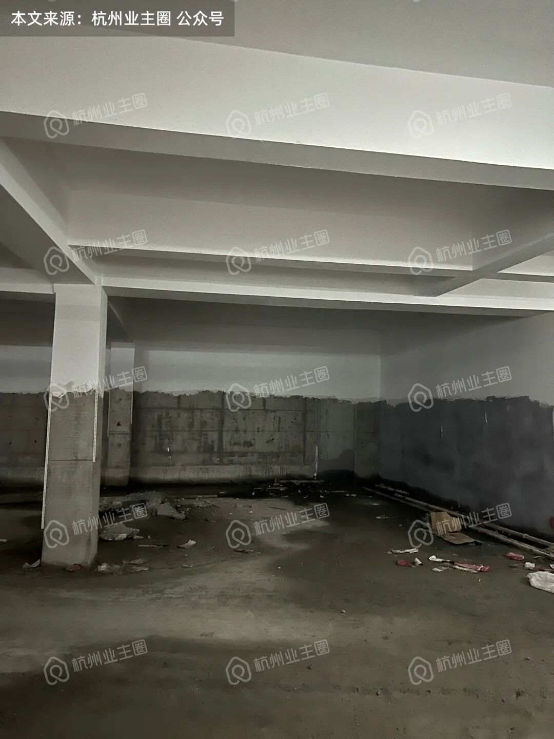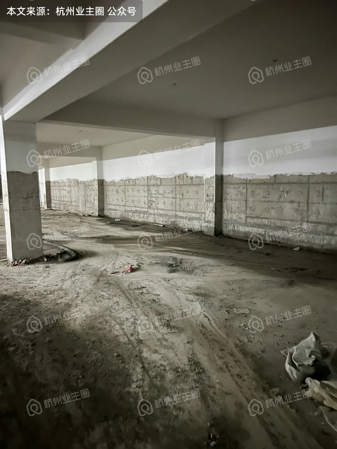 部分区域顶面、柱子、墙面已完成多次粉刷;