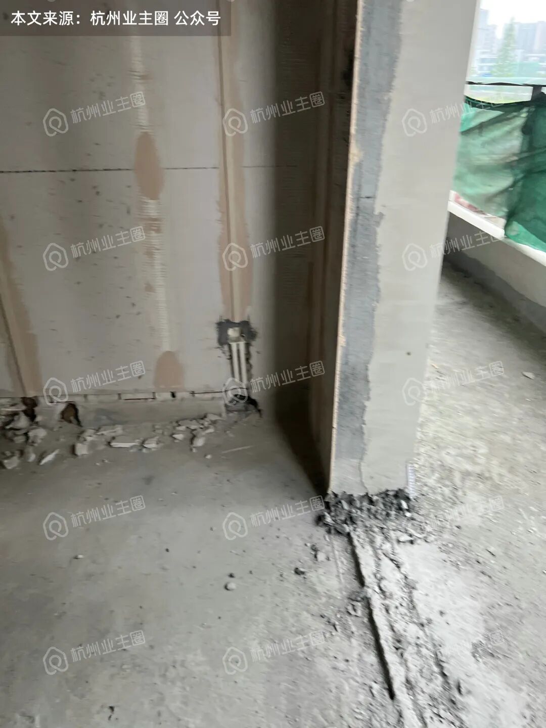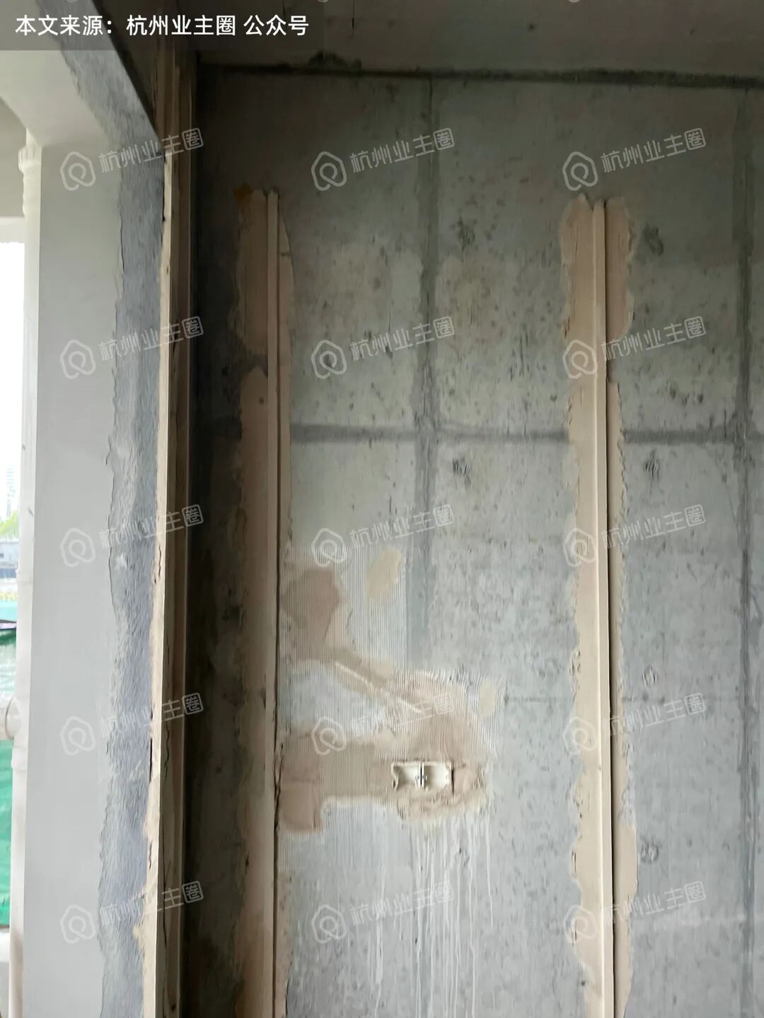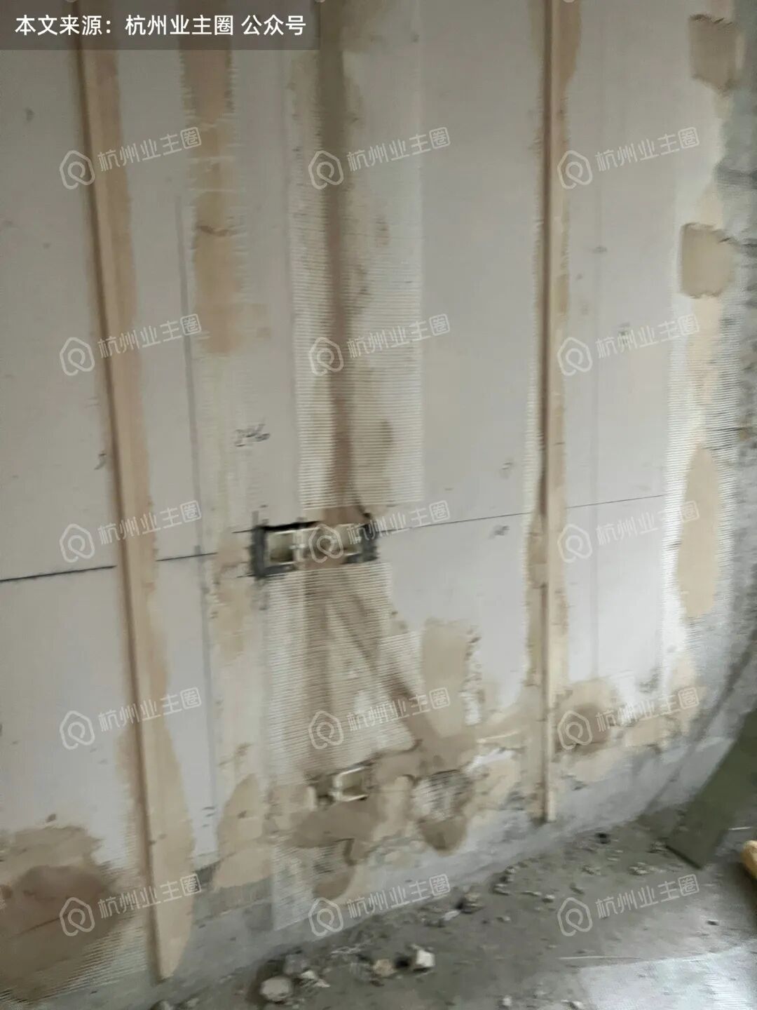 1、120m²户型玄关区域为后砌加气块墙体,强弱电箱开槽后,墙体被凿穿,墙体厚度不足,几乎紧贴暴露于公卫区域,这对后续防水要求较高,如该区域任意一道工序未做到位,就会产生隐患