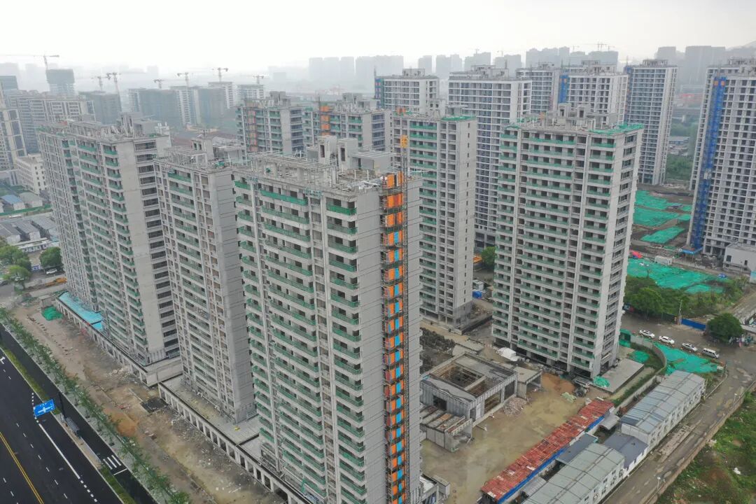 1、整体:主体施工已完成,部分楼幢侧面外立面正在施工中。