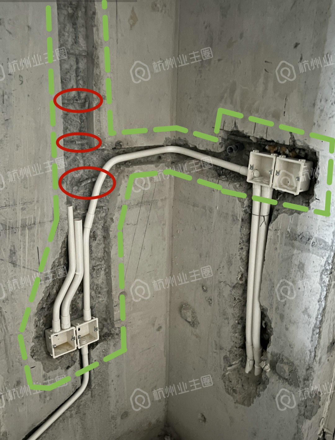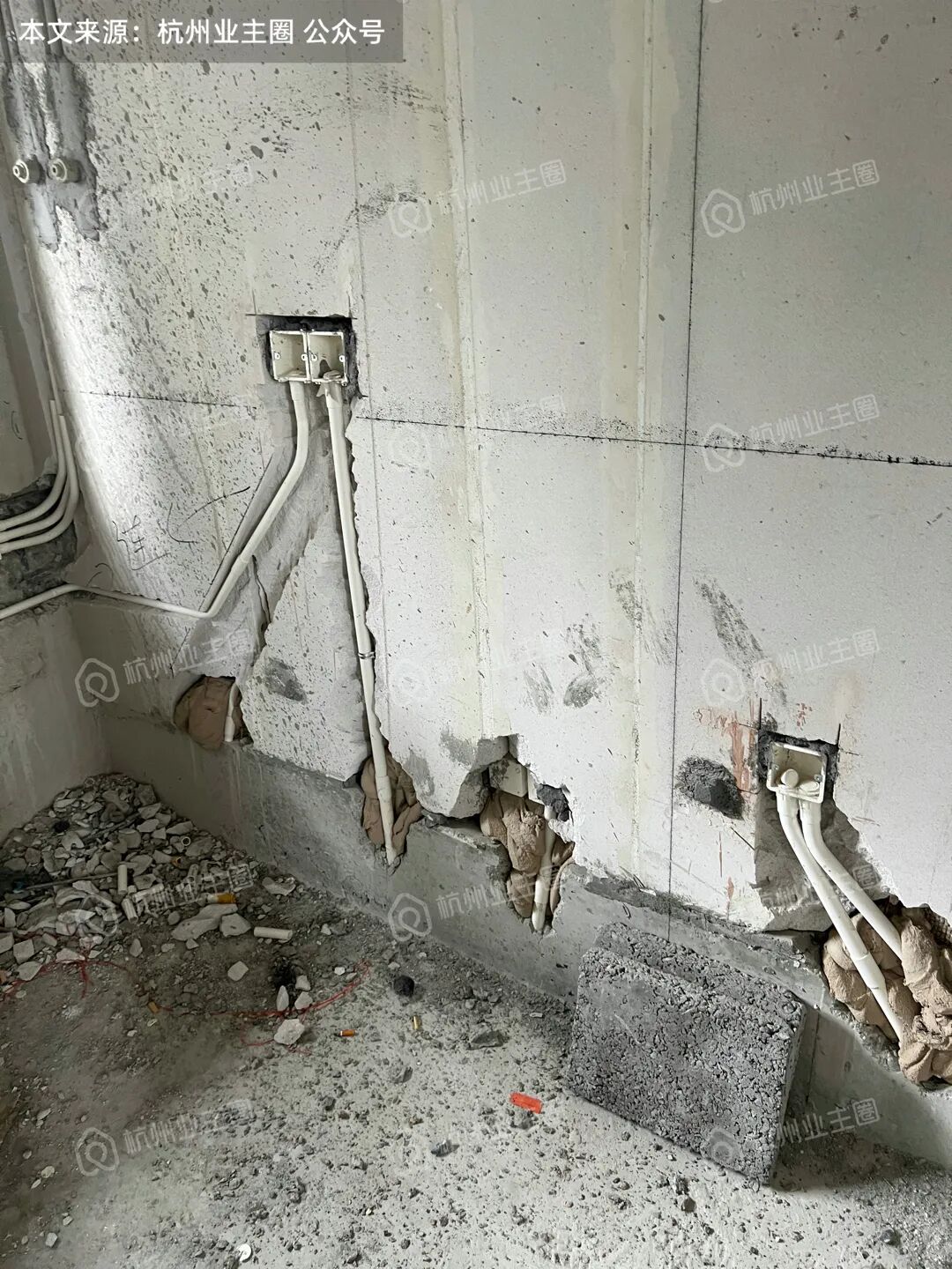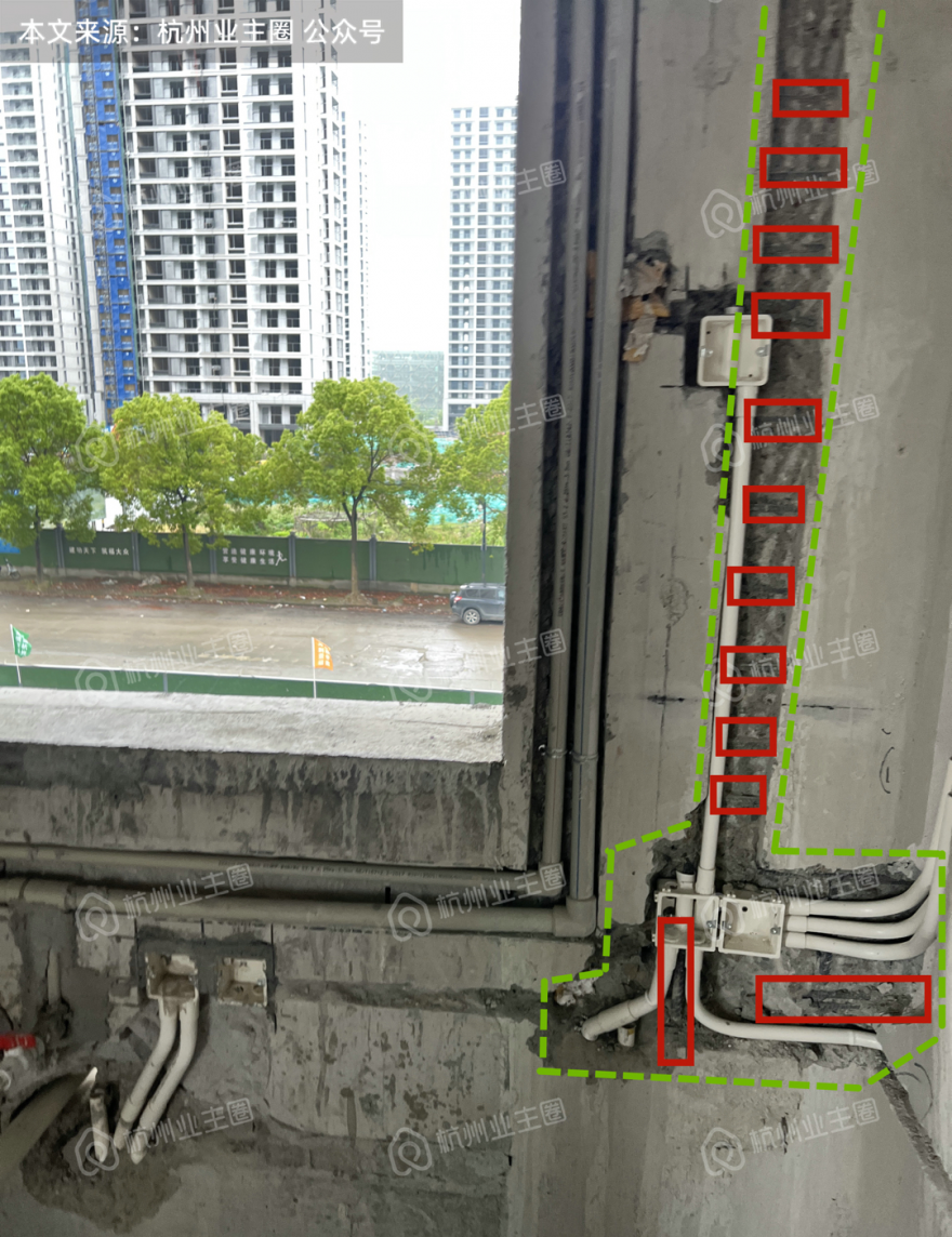 说实话,很少会有楼盘会出现集齐了超规范开横槽、水电同槽(水电交叉过近)、钢筋切断 ... ... 于一身的情况。