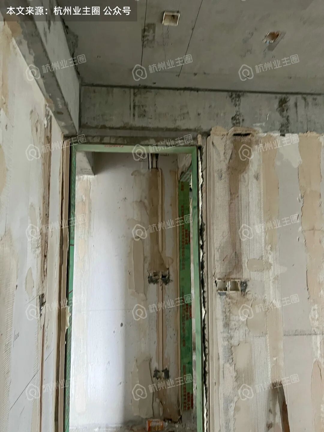 各空间门洞已搭建门套底板,且板材表面已做三防处理;