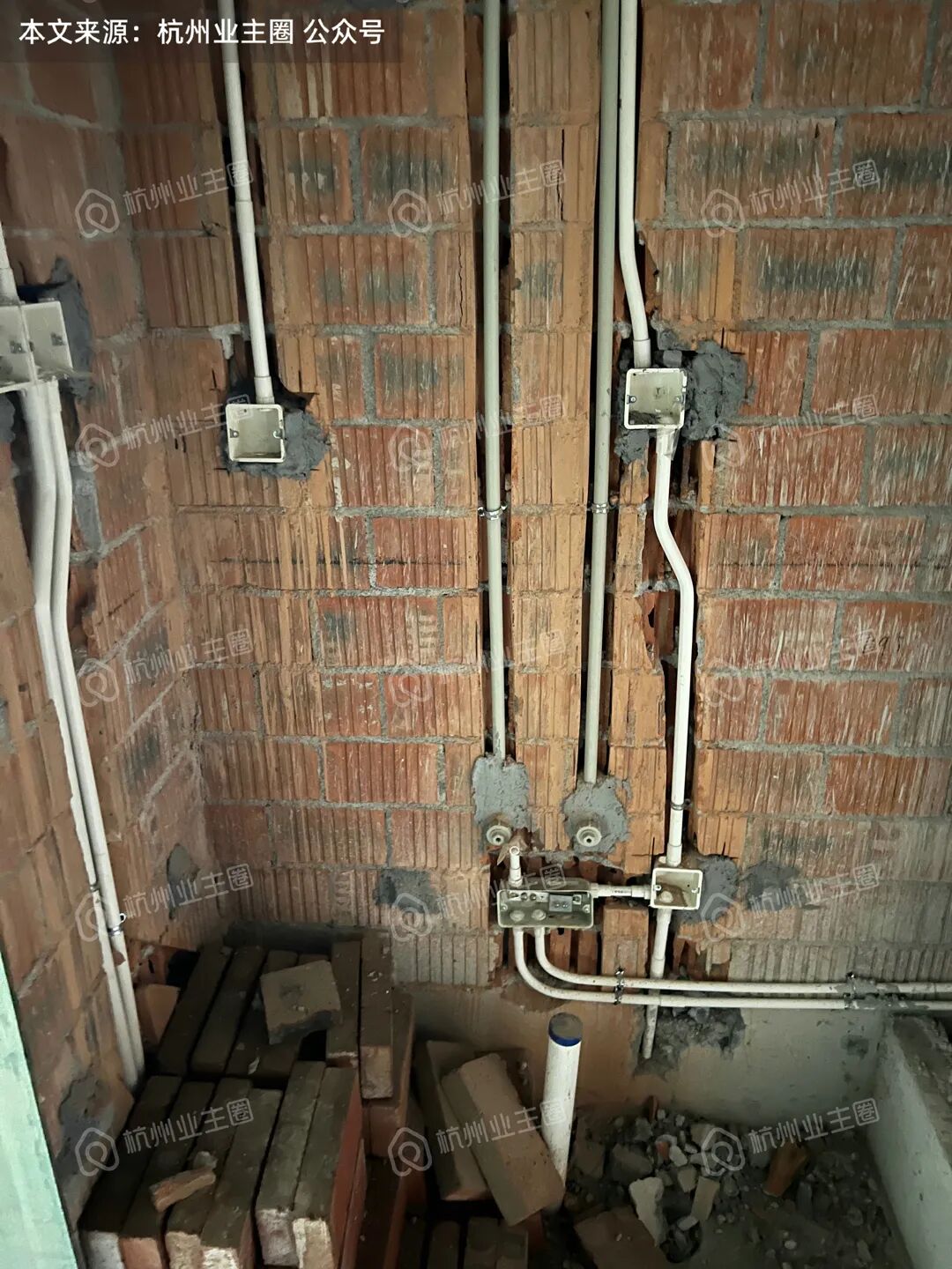室内水电预埋管材为pvc材质,冷热水管只有热水管做了保温处理;