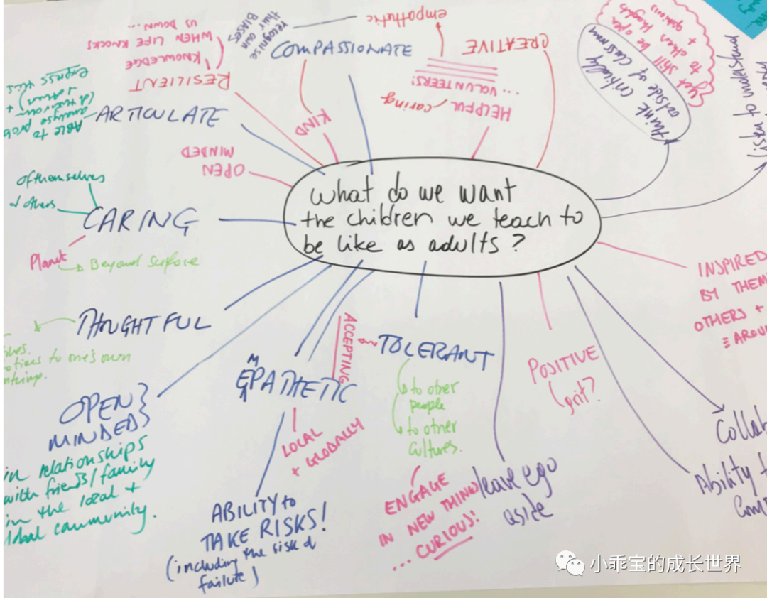 这个问题是我2月份在哈佛零点项目培训课程上被问到的一个问题。我们小组把答案写在一起,我们希望孩子成长为关心别人的人、有独立能力的人、有同情心的人、会思考的人、有合作精神的人、会表达自己的人… …