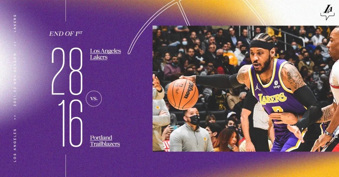 最终全场战罢湖人99-94击败开拓者 此役浓眉30分15篮板 安东尼24分 威少9分10篮板12助攻