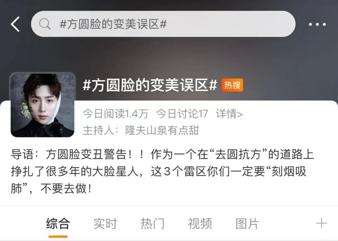 事情起源于前几天的热搜:方圆脸的变美误区。有人先码为敬,有人容貌焦虑,还有姐妹雷区蹦迪……