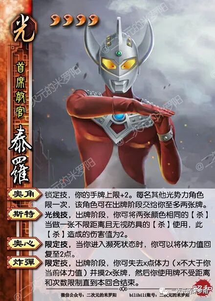 本次先为大家介绍《奥特曼杀第一季》中的奥特曼们(由于每个奥特曼的技能都非常多,不可能面面俱到,所以我设计技能时就选择了我个人认为的主要技能):