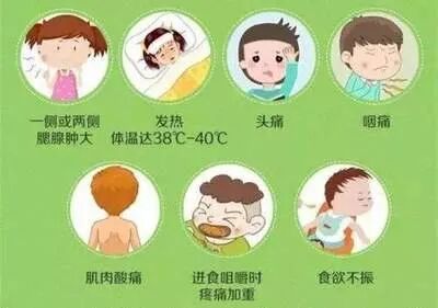 流行性腮腺炎简称流腮,俗称痄腮。四季均有流行,以冬、春季常见。是儿童和青少年期常见的呼吸道传染病。病人是传染源,通过直接接触、飞沫、唾液的吸入为主要传播途径。接触病人后2~3周发病。有发热、畏寒、头痛、肌痛、咽痛、食欲不佳、恶心、呕吐、全身不适等,数小时腮腺肿痛,逐渐明显,体温可达39℃以上。