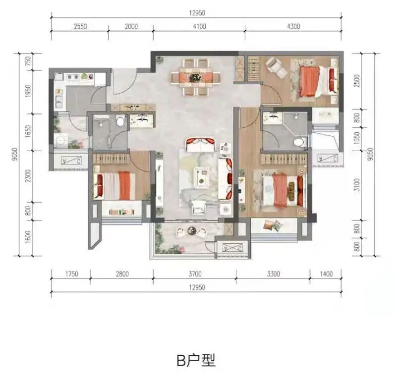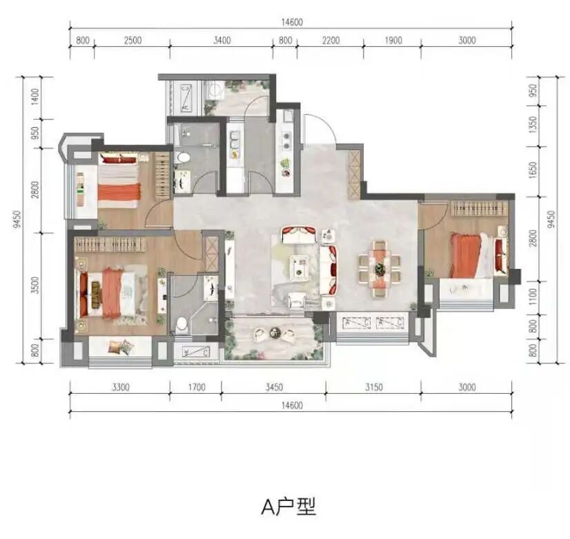 看了看两个户型功能性都很强,三房两卫各个区域没有太大浪费面积: