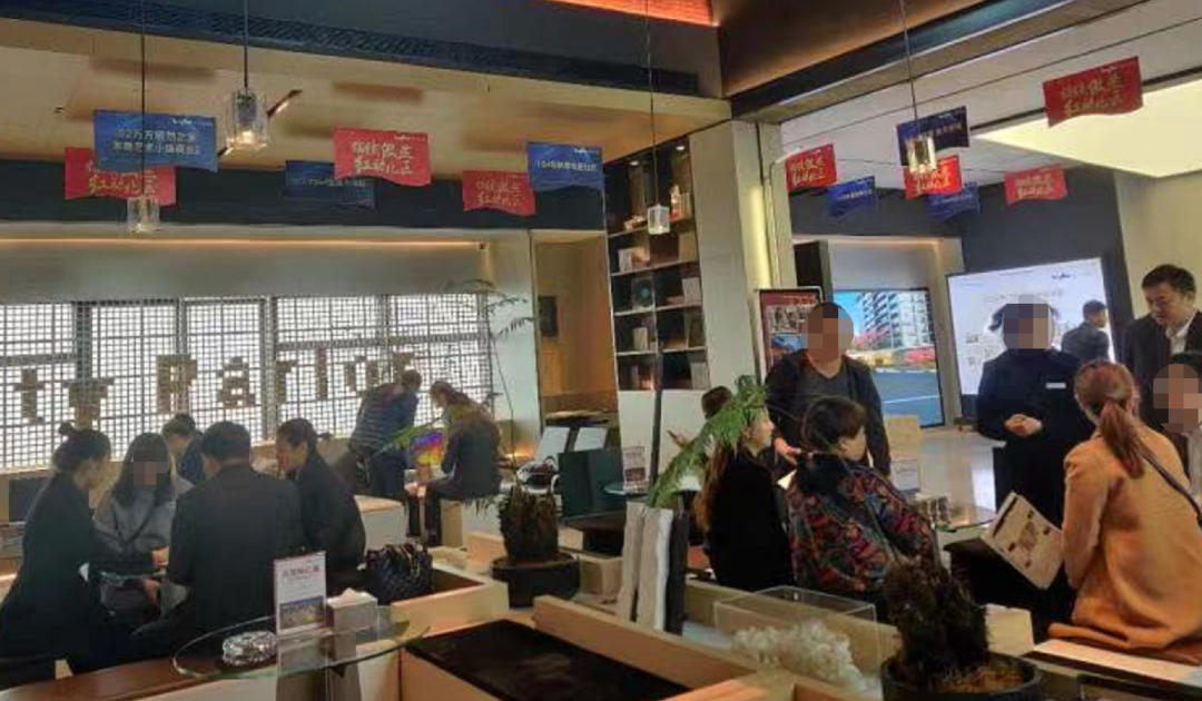 踏进售房部一看,好家伙,休息区里面这么多人!难道是天气变暖,大家看房的兴致变高了吗?