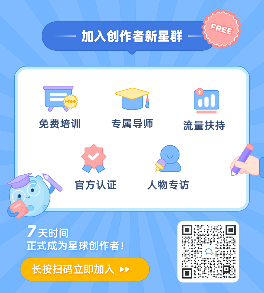 快来加入星球,成为创作者,通过学习和分享,和宝宝一起成长。