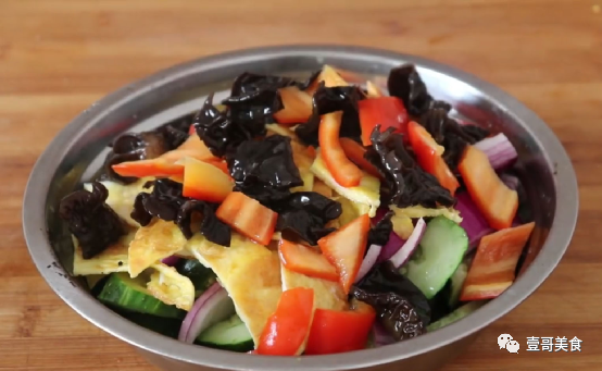 【所需食材】:黄瓜、洋葱、红椒、大蒜、干辣椒、白芝麻、花椒油、食用盐、白糖、陈醋、生抽、鸡蛋、食用油、黑木耳、香油