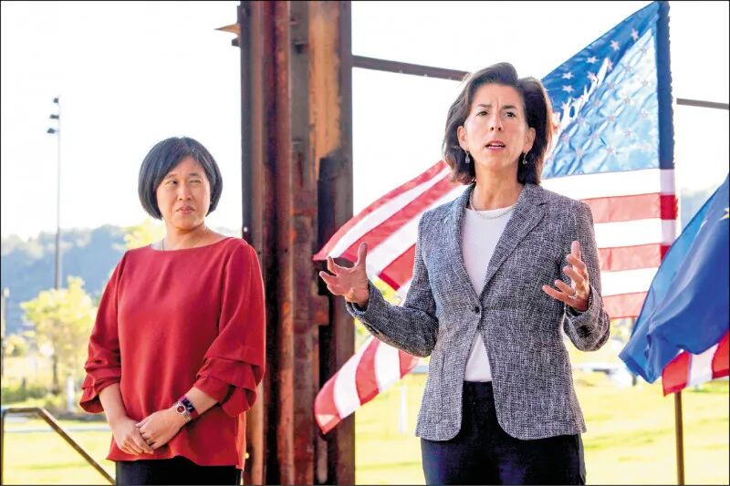 ▎美国商务部长雷蒙多(右一)和贸易代表戴琪(右二)