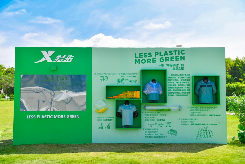 去年6月,世界环境日当天,特步推出了全球首款聚乳酸风衣,成为业内率先攻克聚乳酸上色难题,实现聚乳酸产品服用量产的企业。