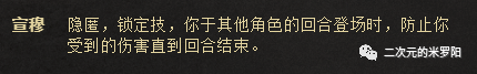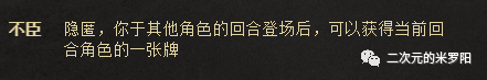 简述:拥有隐匿技的角色在游戏开始时,以“隐匿”状态的武将牌出现,而隐藏真正的武将牌。