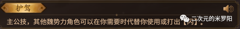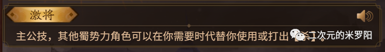 代表技能:刘备的“激将”、曹操的“护驾”