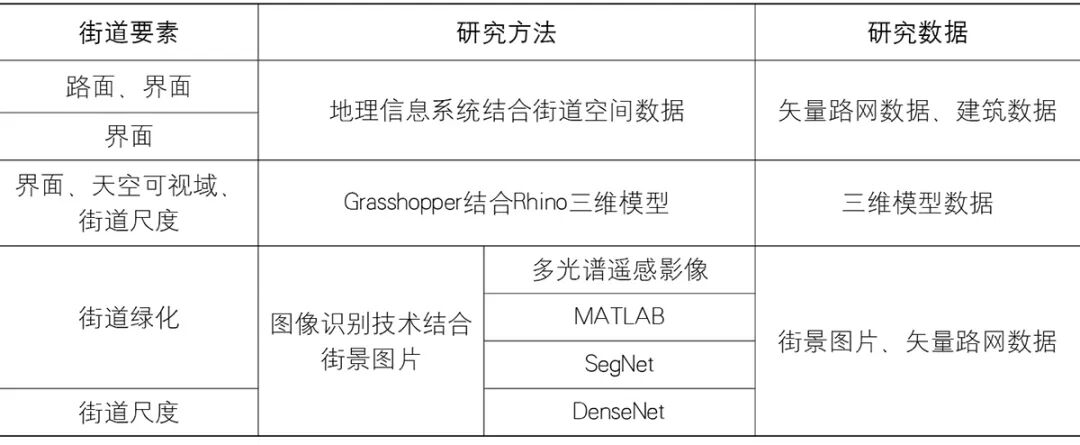 街道空间是使用者进行交流、活动的载体,客观的街道空间形态量化测度是以使用者为出发点的街道量化评价的基础。
