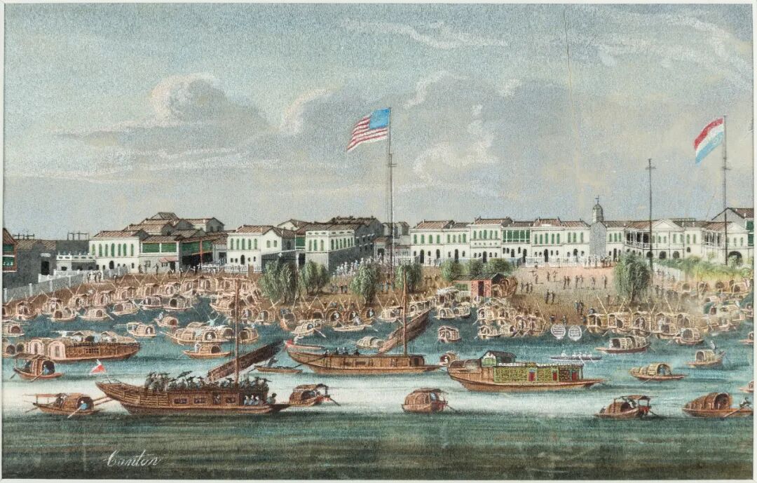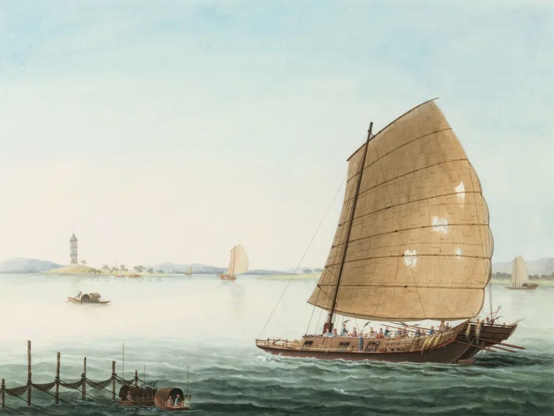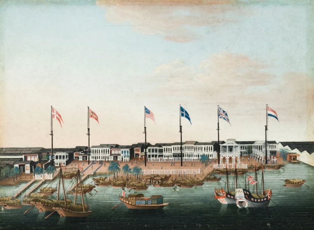 比如当时最受欢迎的肖像画都是以珠江和船只为背景,不同画室之间的画师也会跟上当年的绘画潮流,选择相同的主题、材质、构图及色彩,甚至相互模仿。