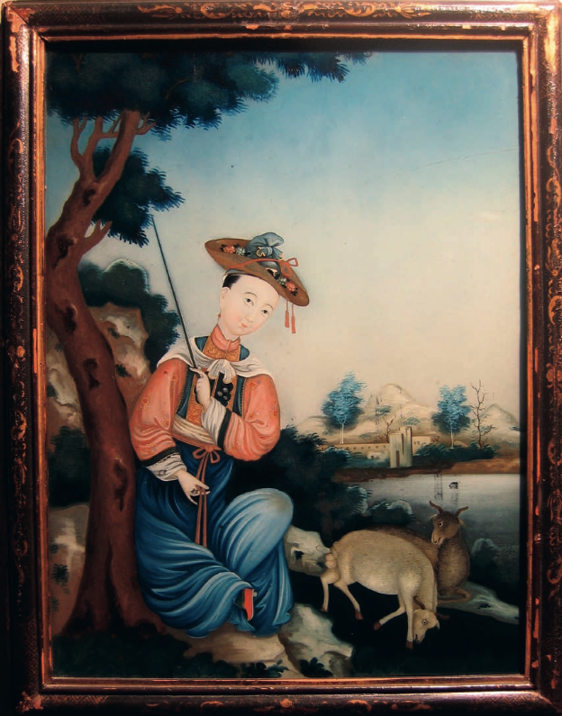 因此,为了让外销画达到更好的销量,他们甚至会根据洋人的要求加工定制画面,比如把中国女子的肖像硬生生地“套进”基督教牧羊人的故事之中。